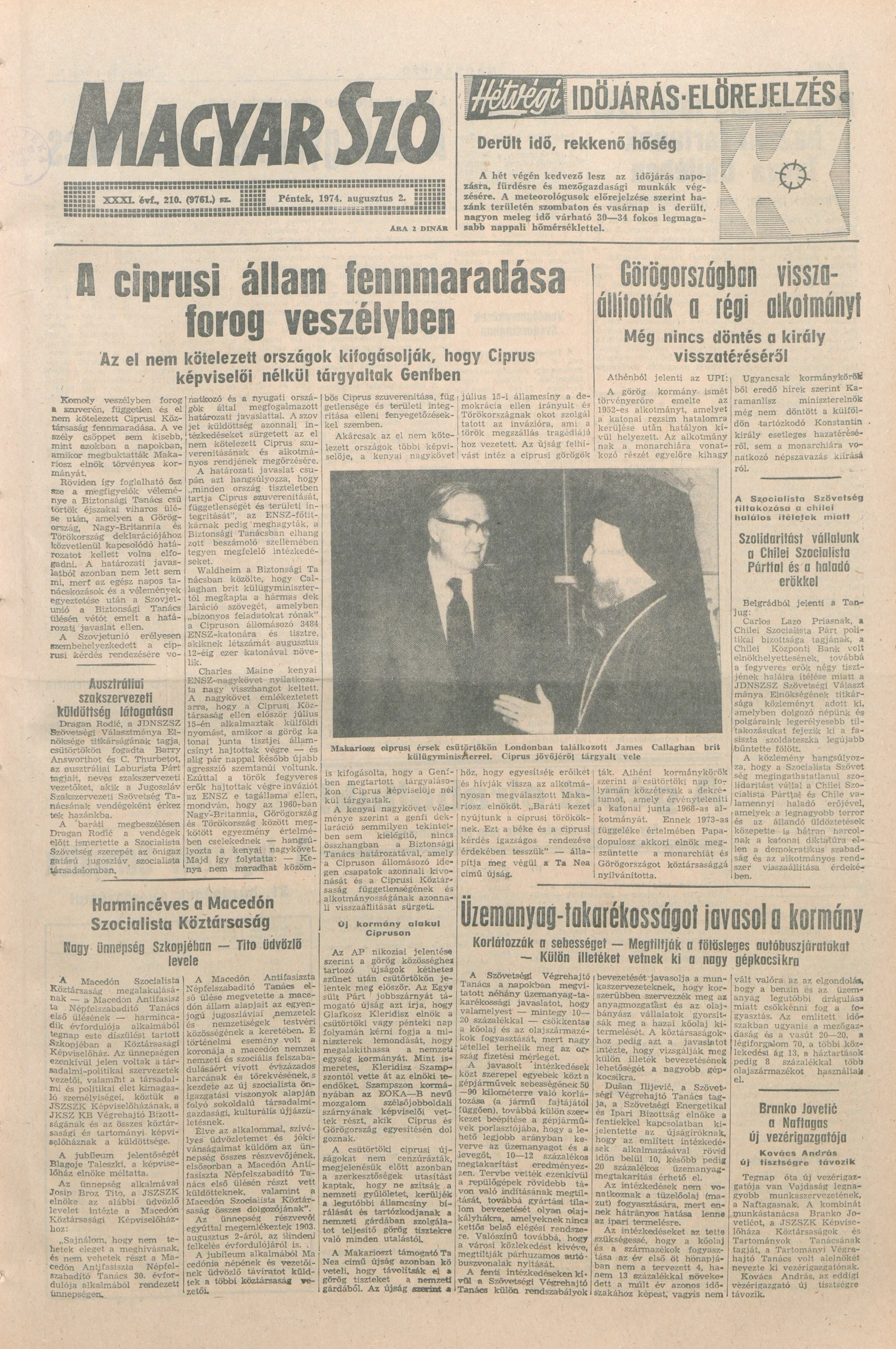 Magyar Szó, 31. évf. 1974. augusztus 2. 210. sz. 1–12. oldal