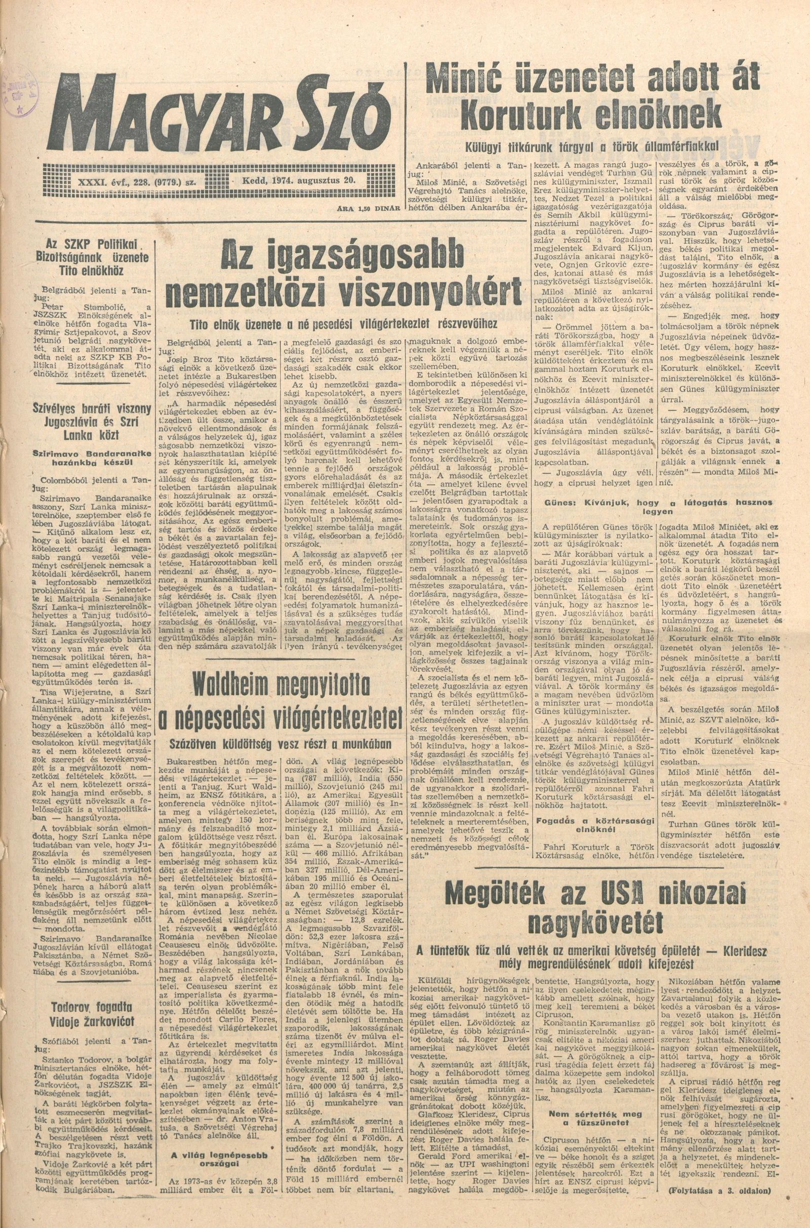 Magyar Szó, 31. évf. 1974. augusztus 20. 228. sz. 1–20. oldal