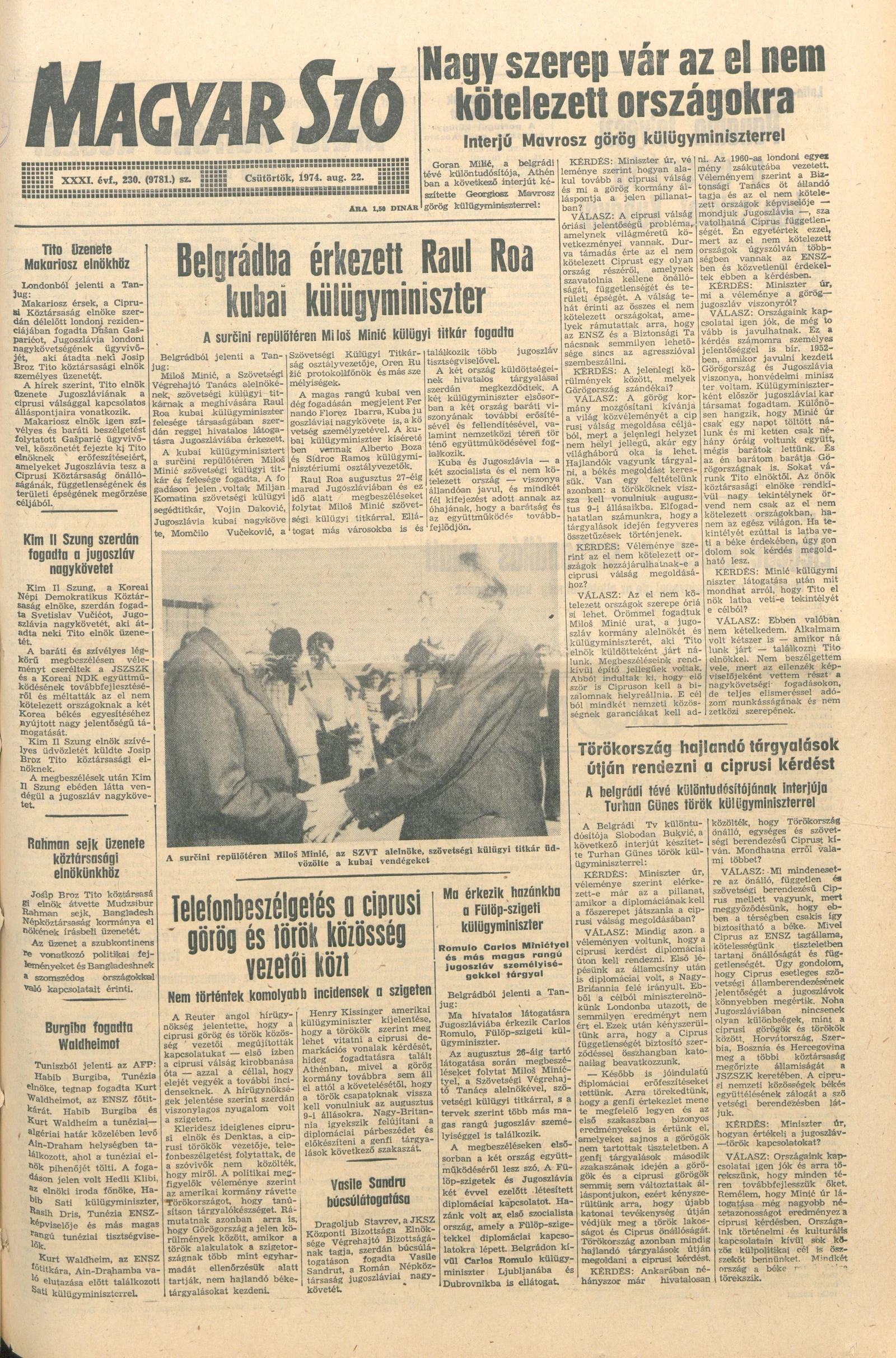 Magyar Szó, 31. évf. 1974. augusztus 22. 230. sz. 1–16. oldal