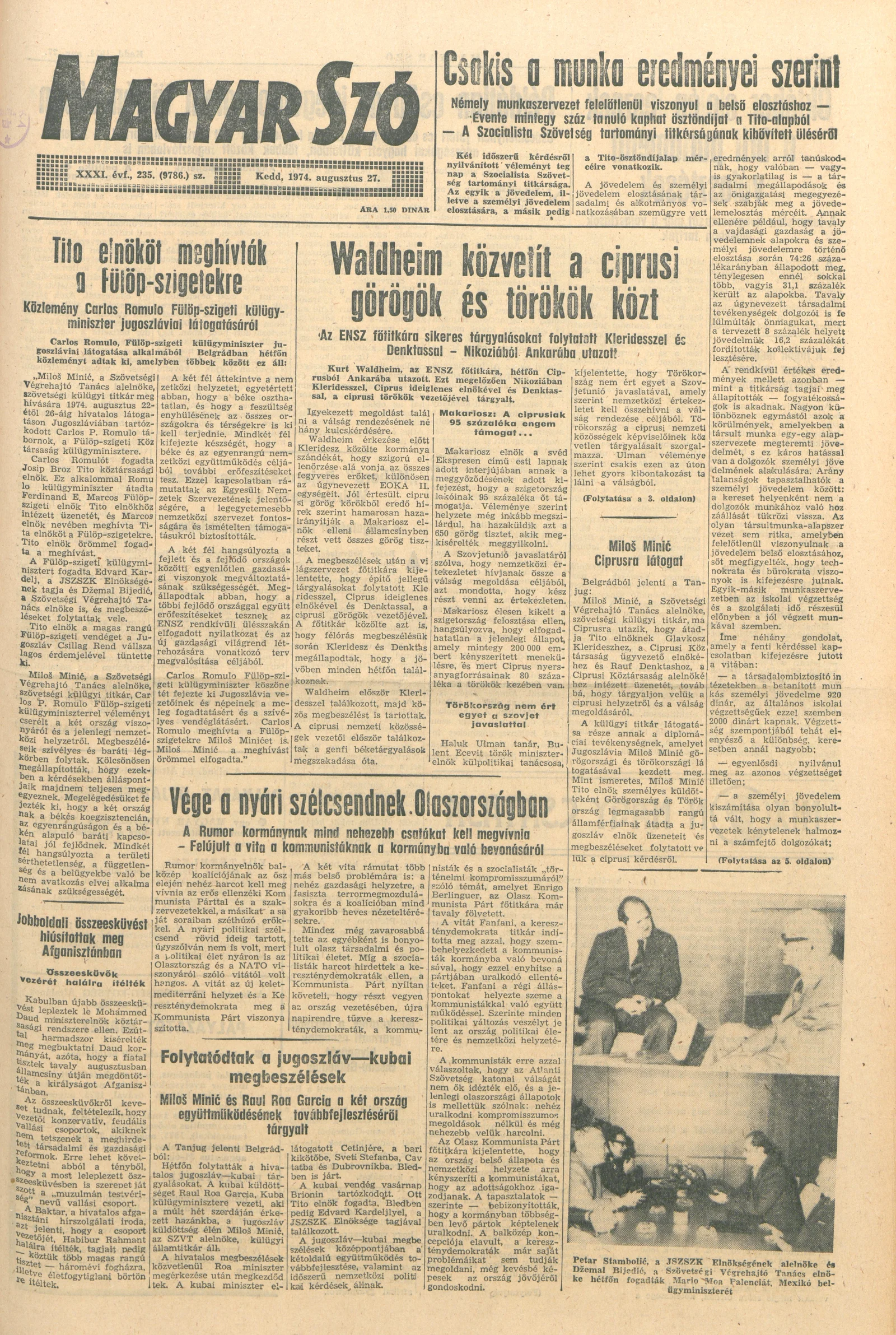 Magyar Szó, 31. évf. 1974. augusztus 27. 235. sz. 1–16. oldal