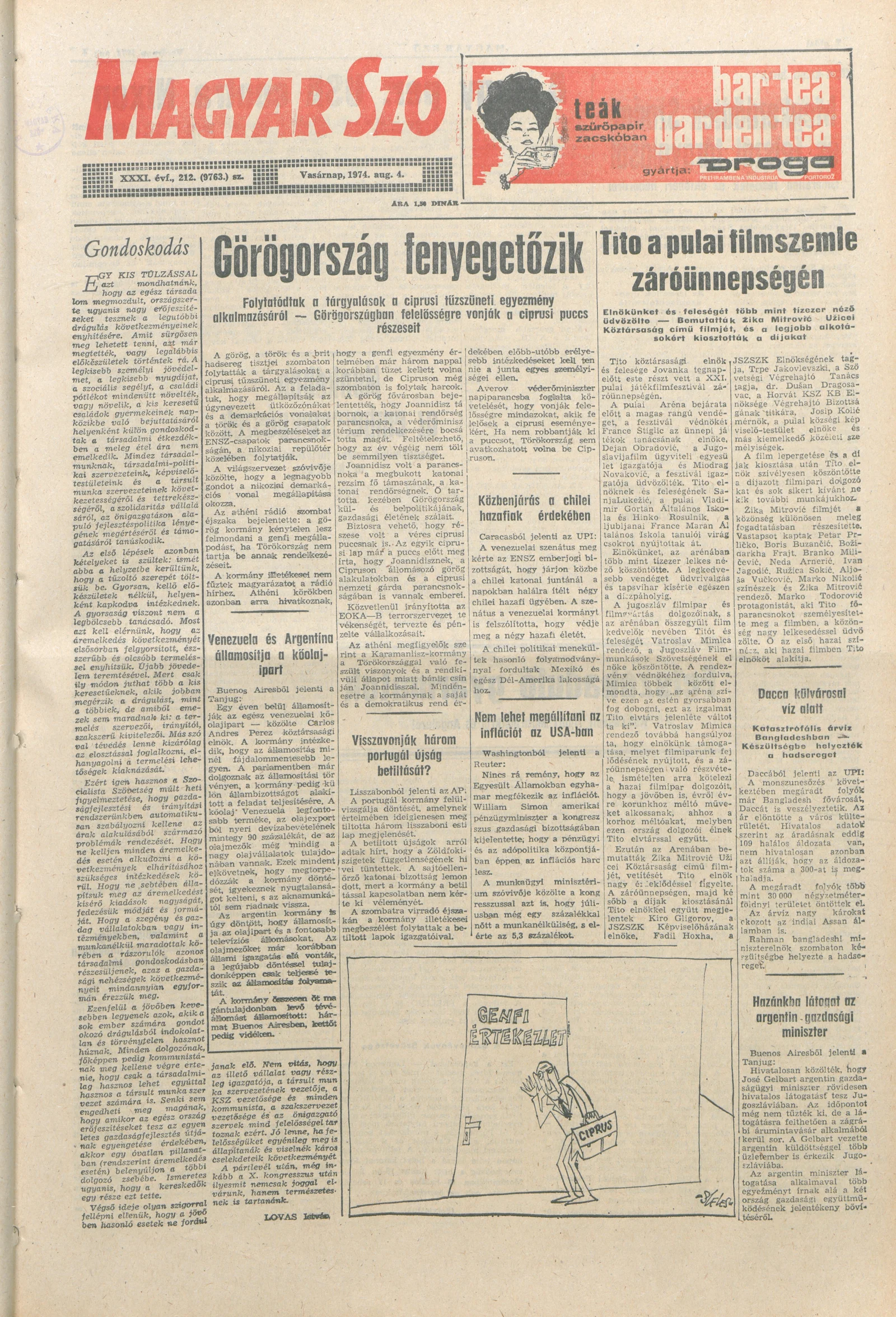Magyar Szó, 31. évf. 1974. augusztus 4. 212. sz. 1–28. oldal