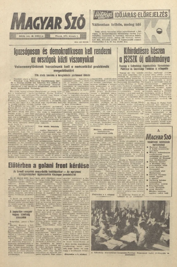 Főoldal►Periodikatár►Magyar Szó►Magyar Szó, 31. évf. 1974. február 1. 30. sz. 1–16. oldal