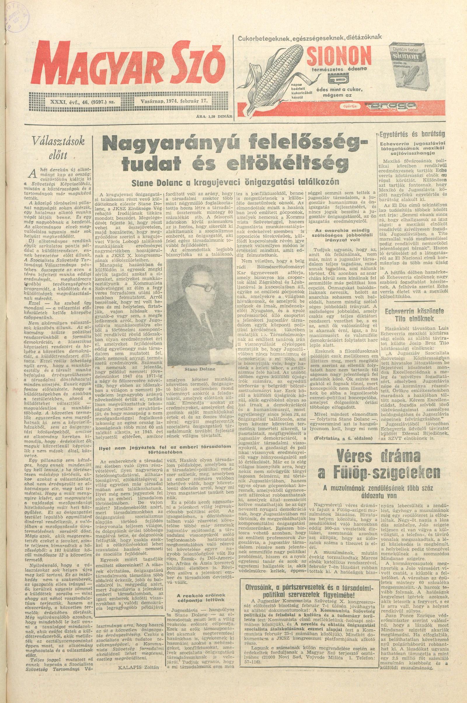 Magyar Szó, 31. évf. 1974. február 17. 46. sz. 1–36. oldal