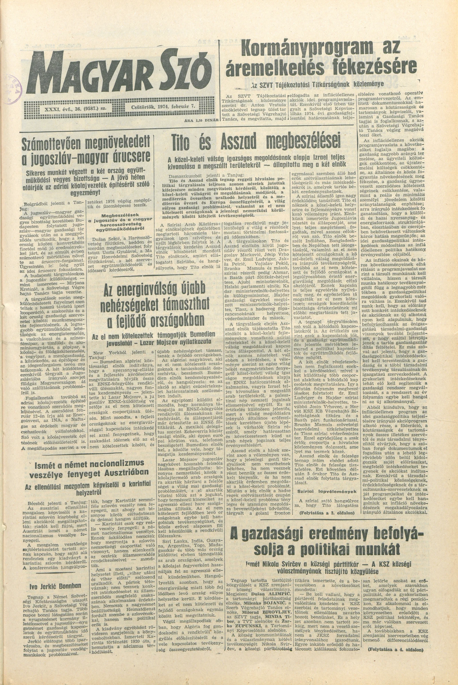 Magyar Szó, 31. évf. 1974. február 7. 36. sz. 1–20. oldal