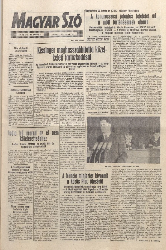 Magyar Szó, 31. évf. 1974. január 16. 14. sz. 1–20. oldal