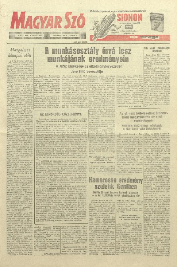 Magyar Szó, 31. évf. 1974. január 6. 4. sz. 1–32. oldal