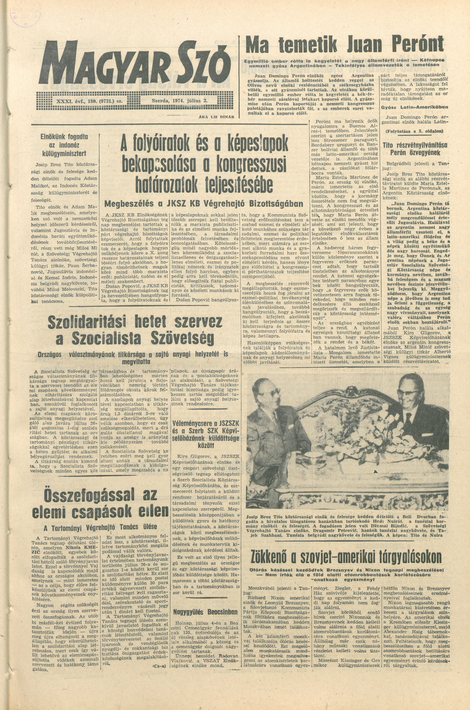 Magyar Szó, 31. évf. 1974. július 3. 180. sz. 1–16. oldal