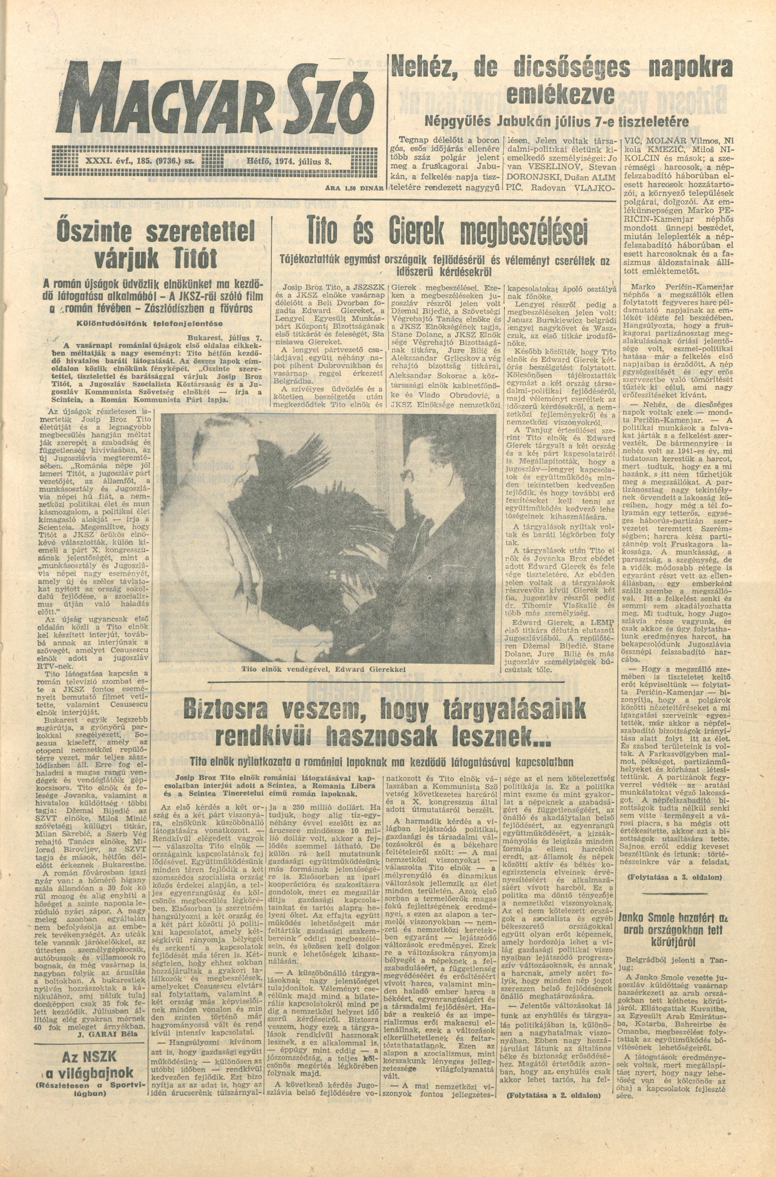 Magyar Szó, 31. évf. 1974. július 8. 185. sz. 1–4. oldal