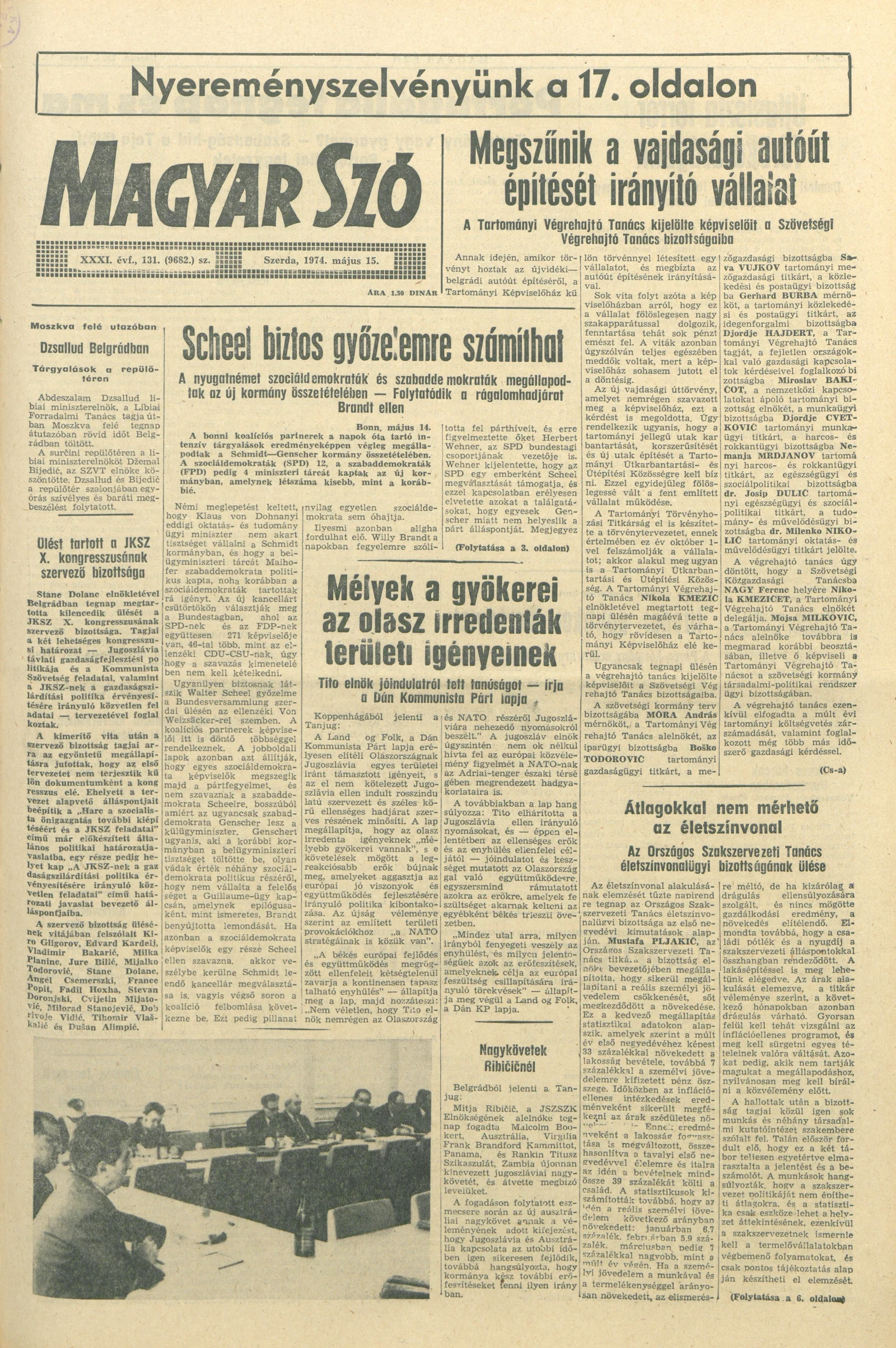 Magyar Szó, 31. évf. 1974. május 15. 131. sz. 1–20. oldal