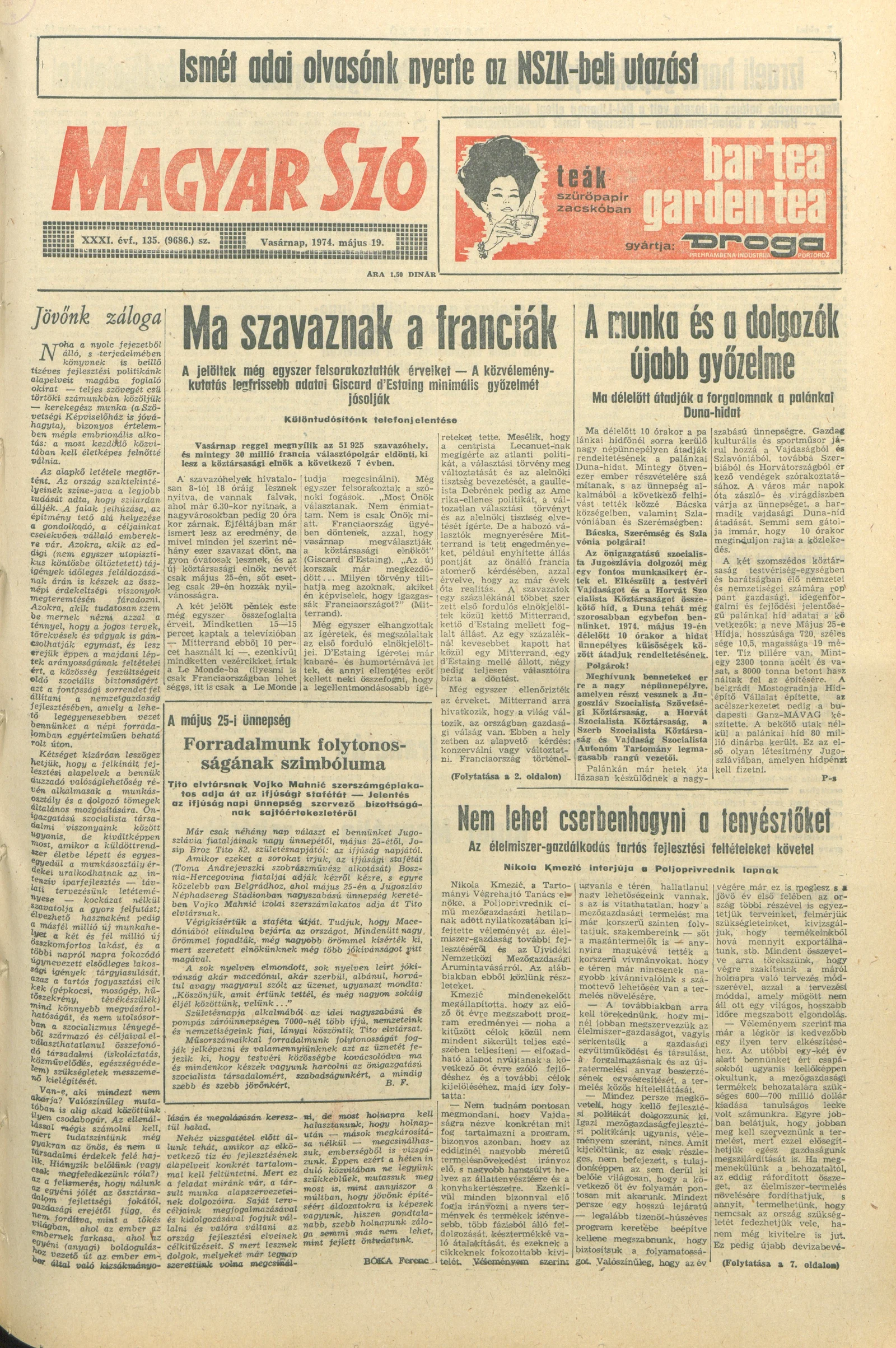 Magyar Szó, 31. évf. 1974. május 19. 135. sz. 1–34. oldal