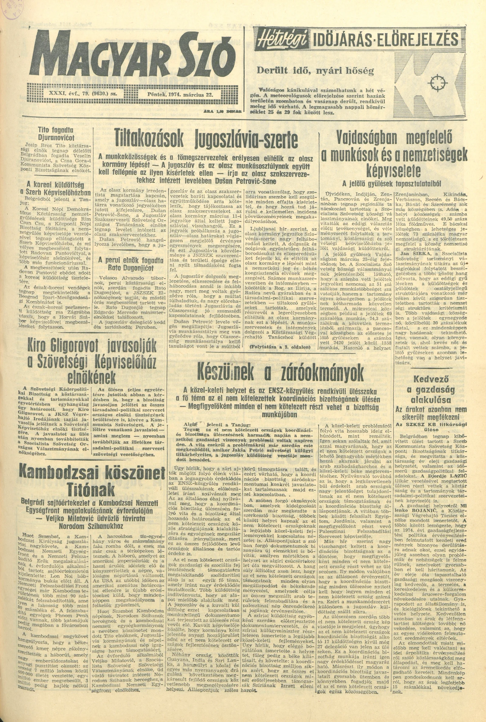 Magyar Szó, 31. évf. 1974. március 22. 79. sz. 1–16. oldal