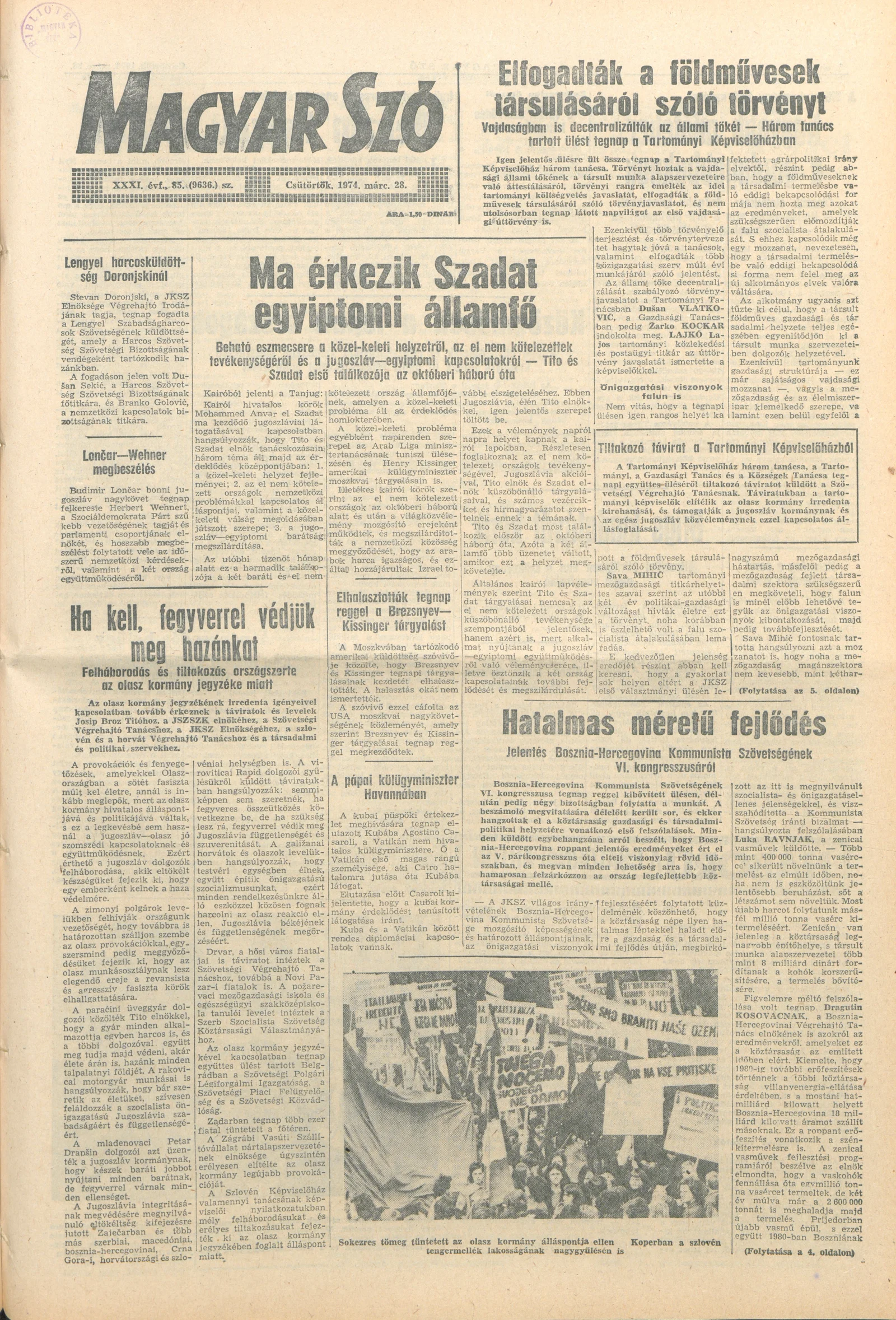 Magyar Szó, 31. évf. 1974. március 28. 85. sz. 1–20. oldal
