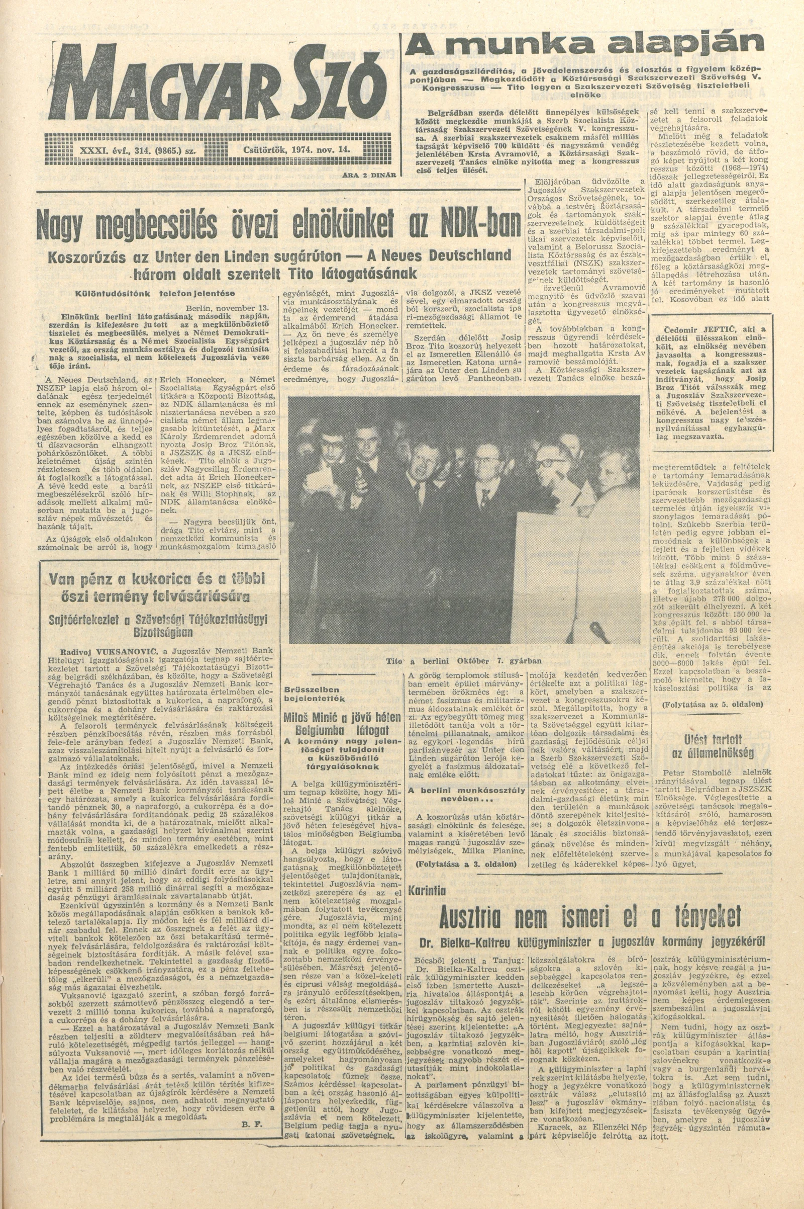 Magyar Szó, 31. évf. 1974. november 14. 314. sz. 1–16. oldal