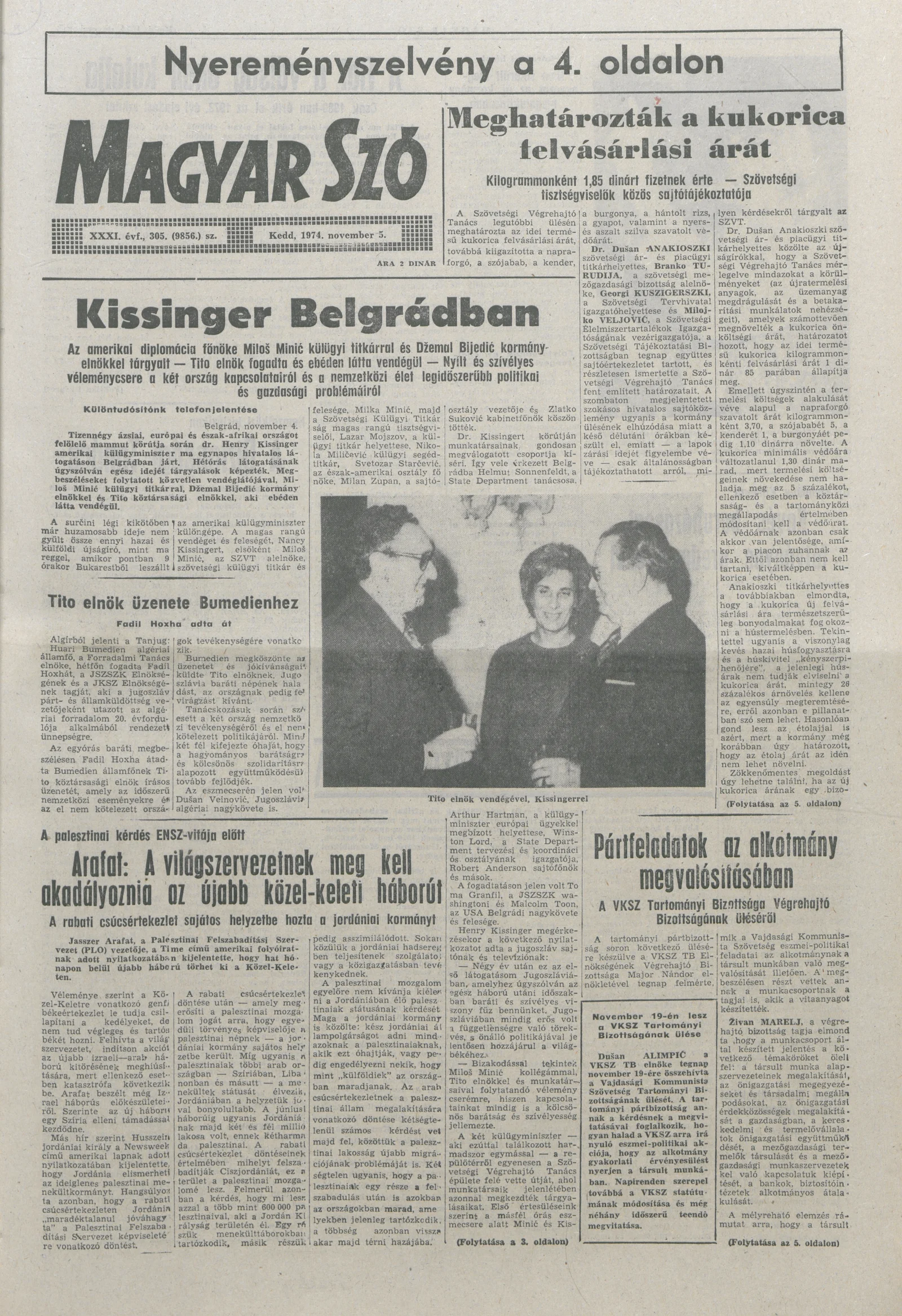 Magyar Szó, 31. évf. 1974. november 5. 305. sz. 1–20. oldal