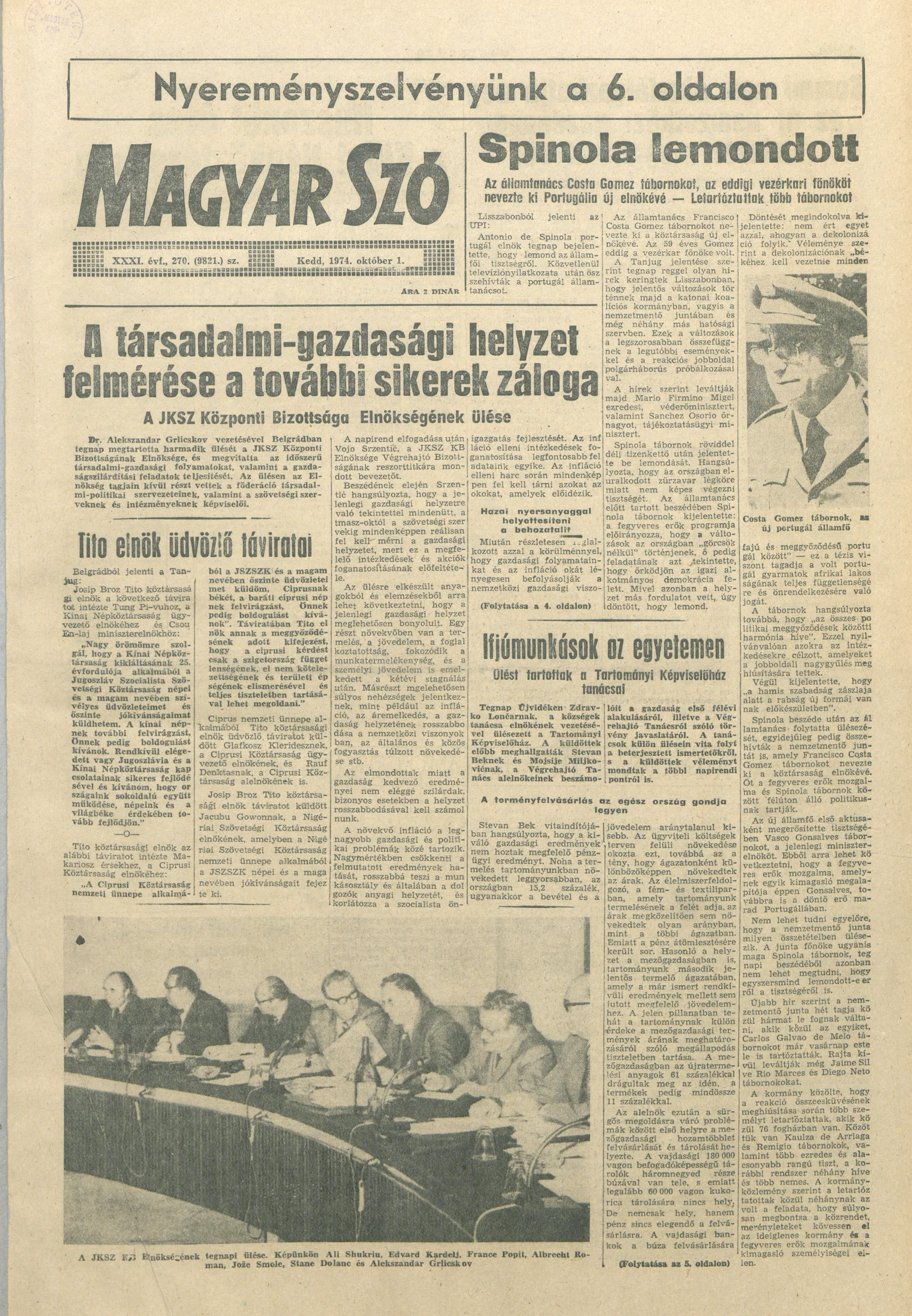 Magyar Szó, 31. évf. 1974. október 1. 270. sz. 1–20. oldal