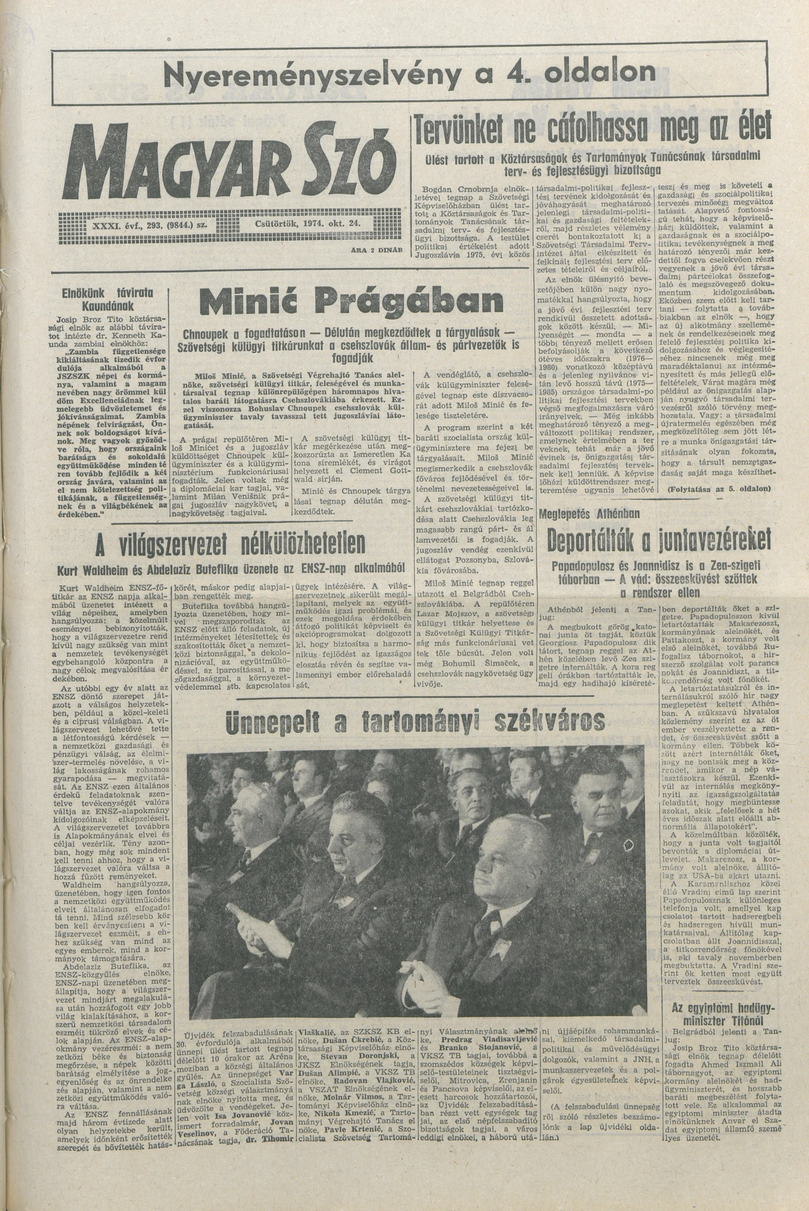 Magyar Szó, 31. évf. 1974. október 24. 293. sz. 1–16. oldal