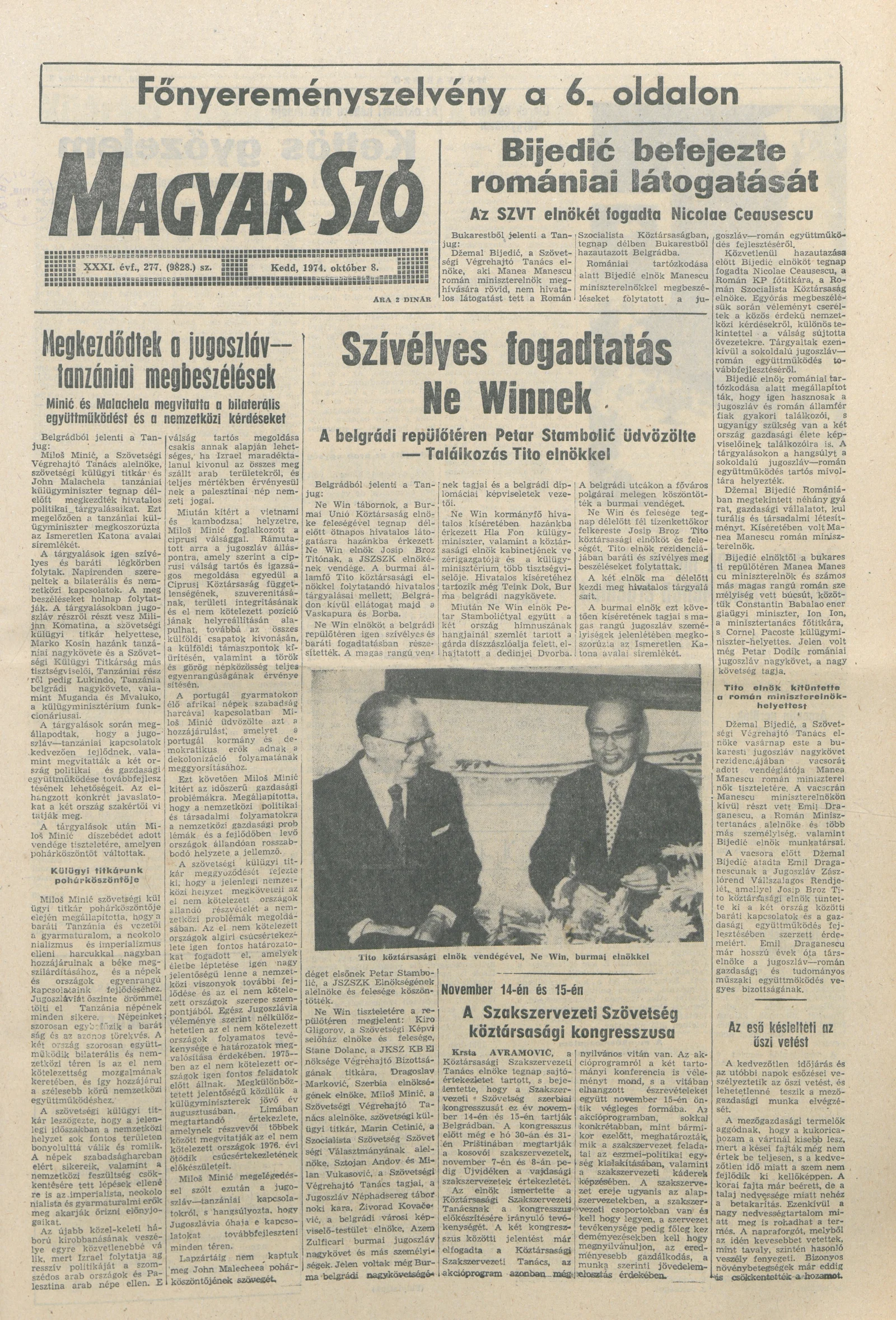 Magyar Szó, 31. évf. 1974. október 8. 277. sz. 1–20. oldal