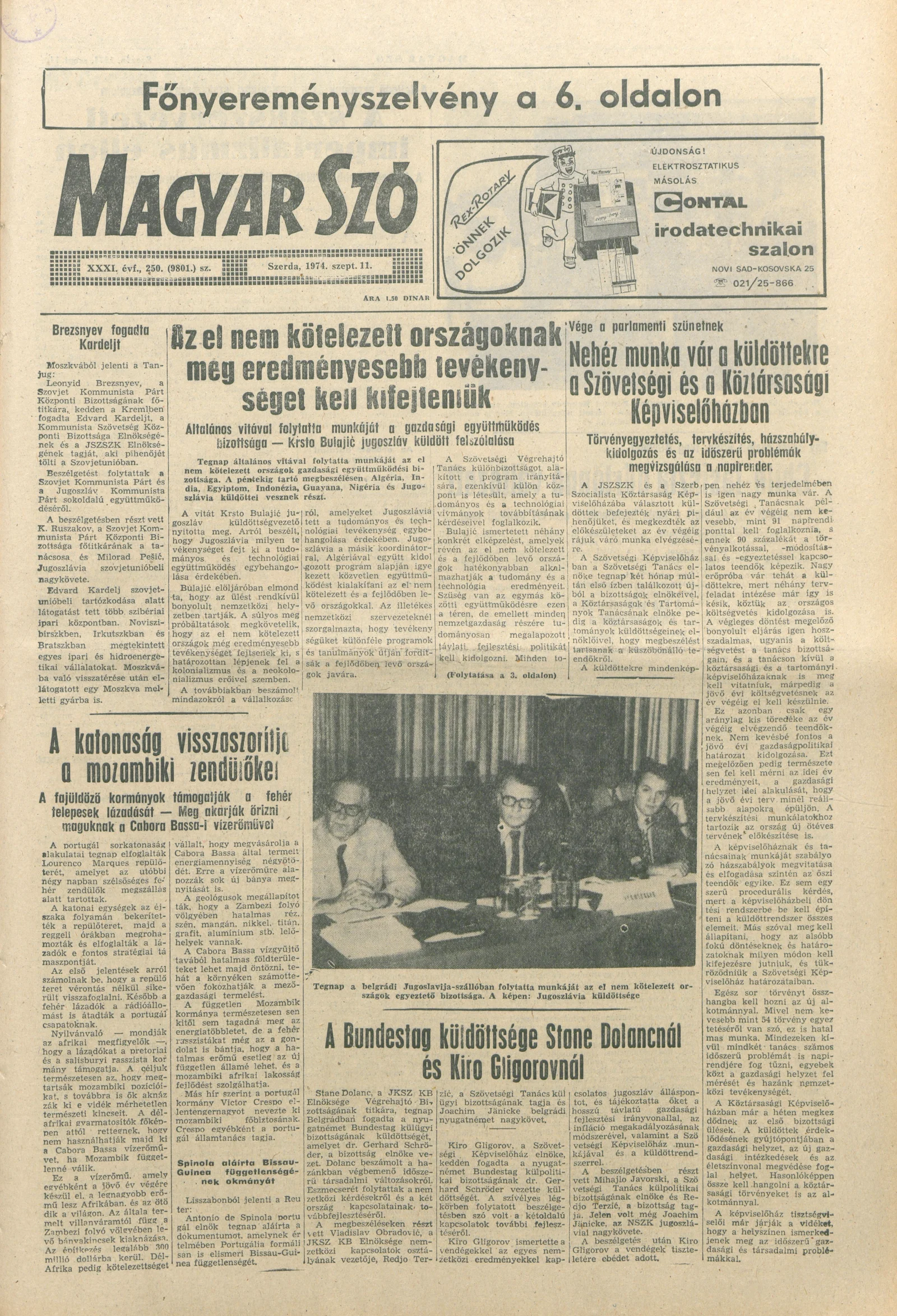 Magyar Szó, 31. évf. 1974. szeptember 11. 250. sz. 1–20. oldal