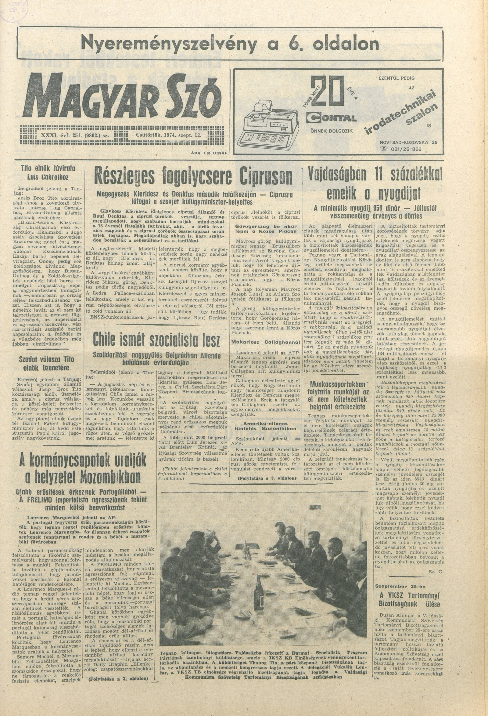 Magyar Szó, 31. évf. 1974. szeptember 12. 251. sz. 1–20. oldal