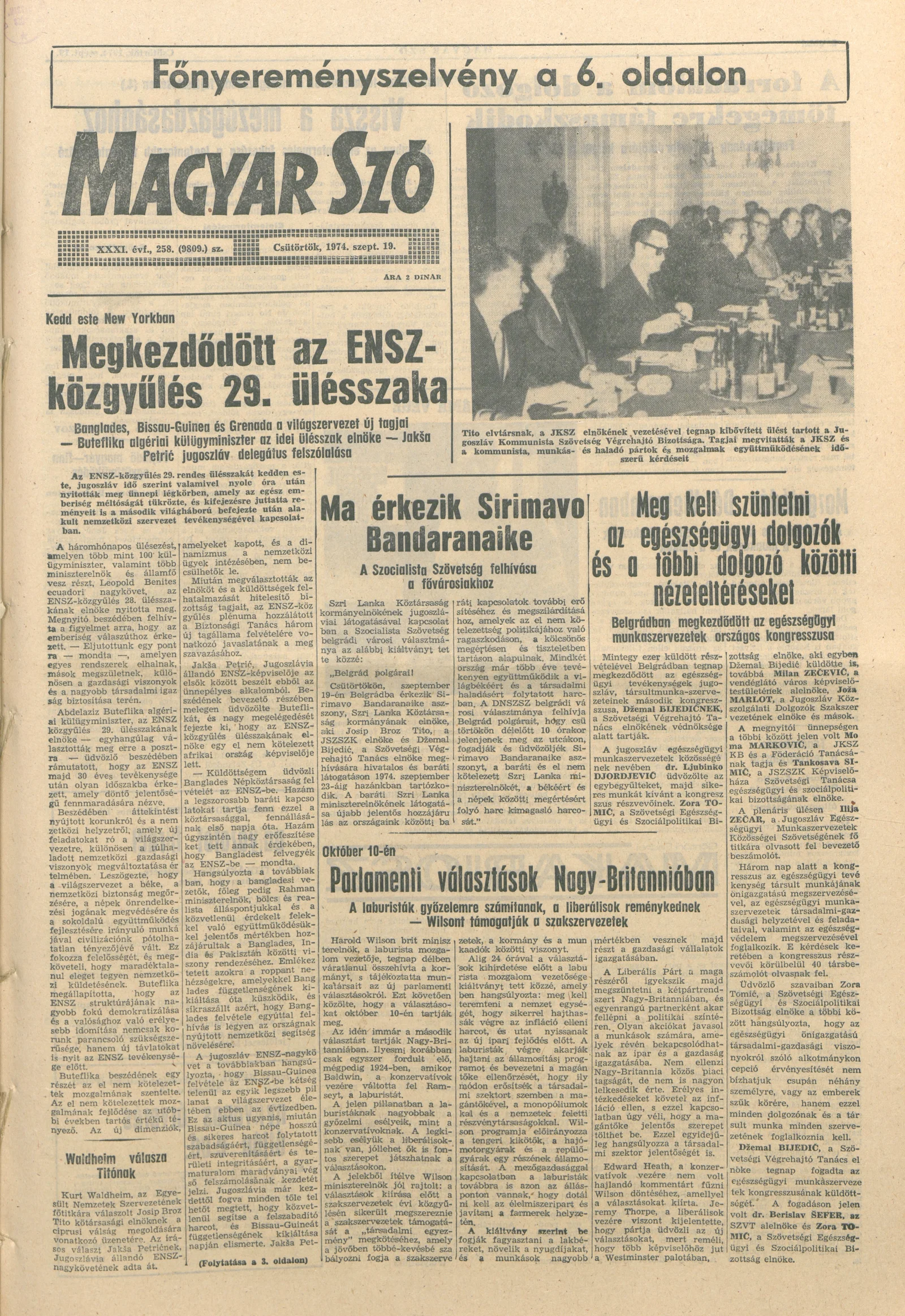 Magyar Szó, 31. évf. 1974. szeptember 19. 258. sz. 1–16. oldal