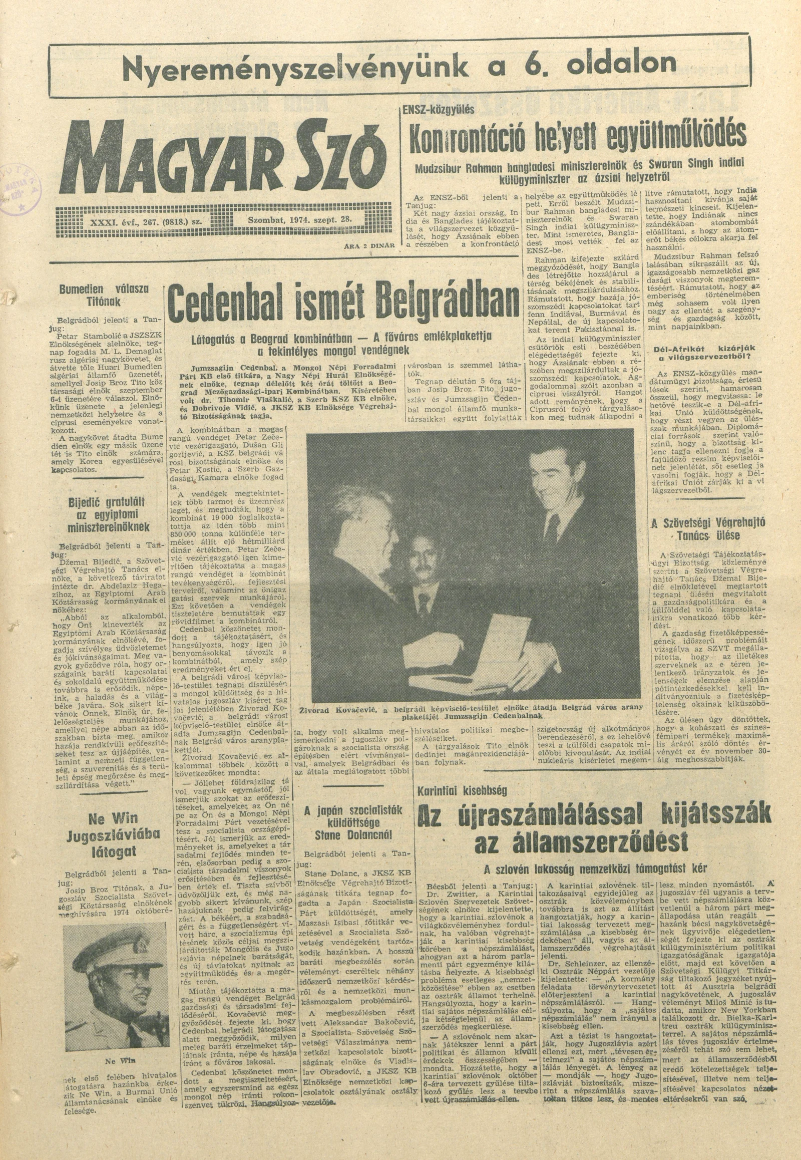 Magyar Szó, 31. évf. 1974. szeptember 28. 267. sz. 1–20. oldal