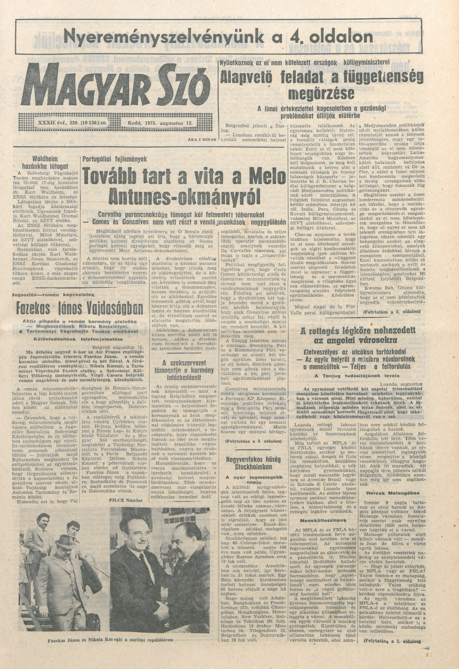 Magyar Szó, 32. évf. 1975. augusztus 12. 220. sz.