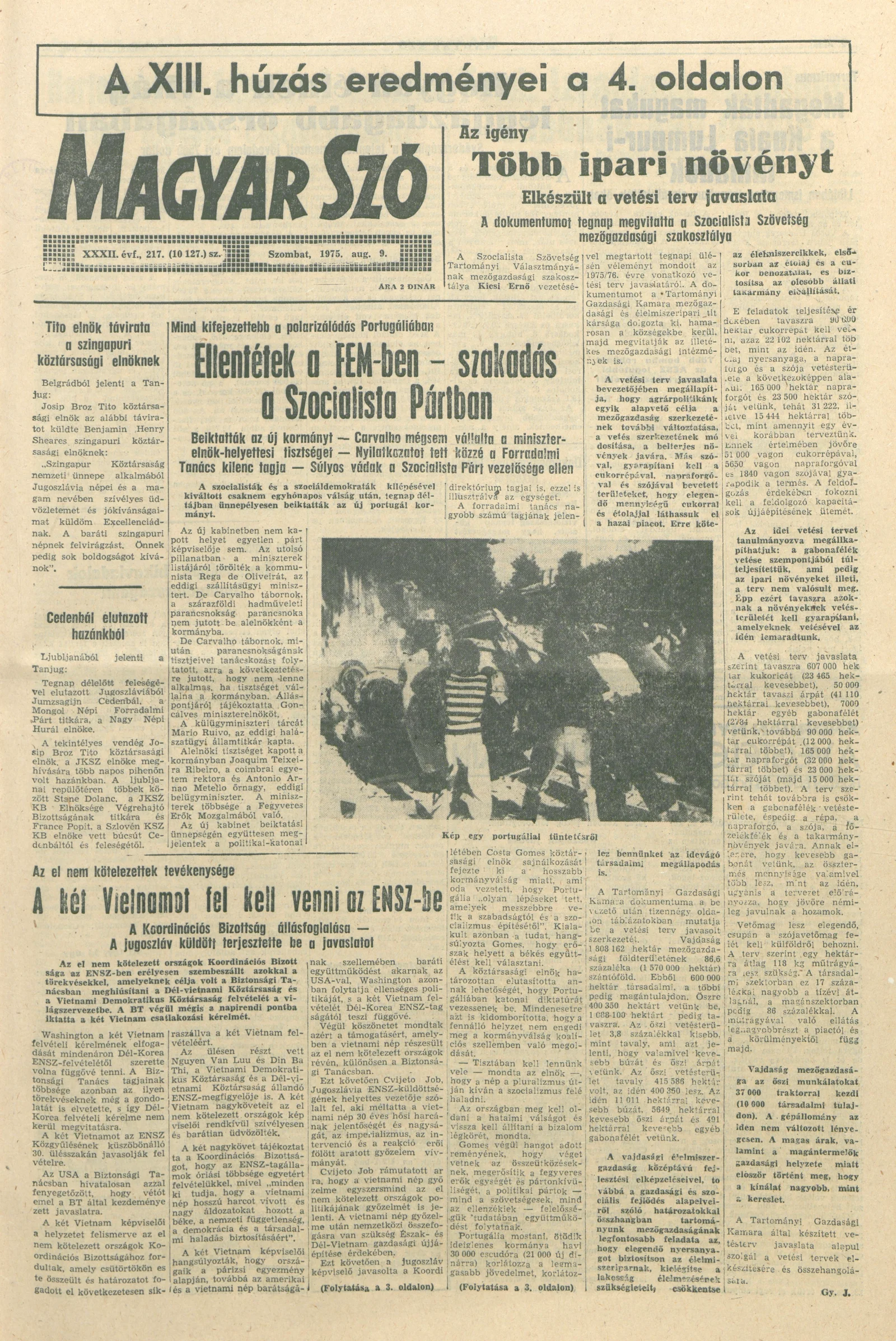 Magyar Szó, 32. évf. 1975. augusztus 9. 217. sz.