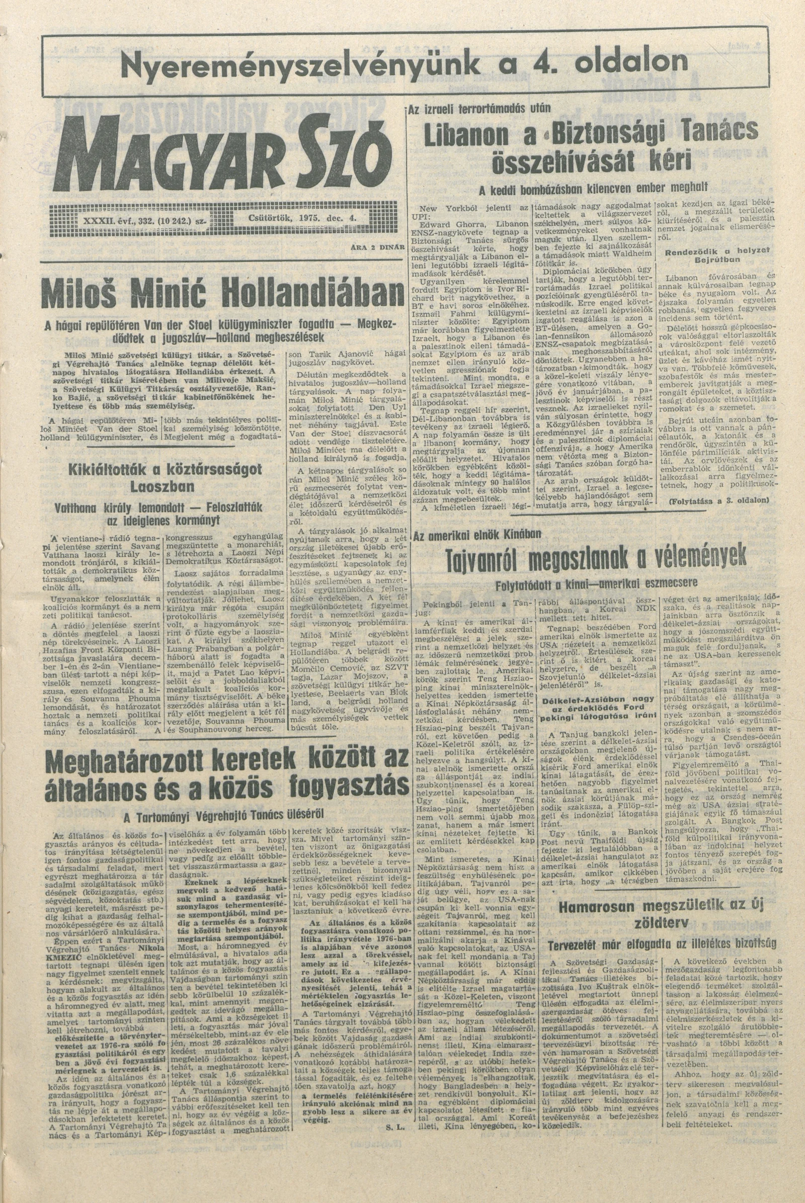 Magyar Szó, 32. évf. 1975. december 4. 332. sz.