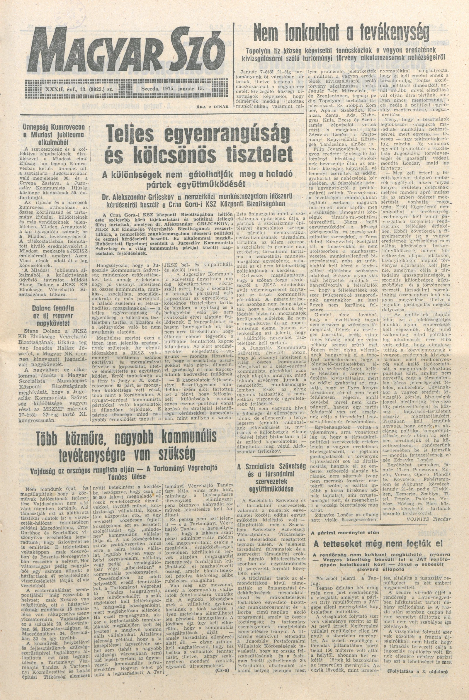 Magyar Szó, 32. évf. 1975. január 15. 13. sz.