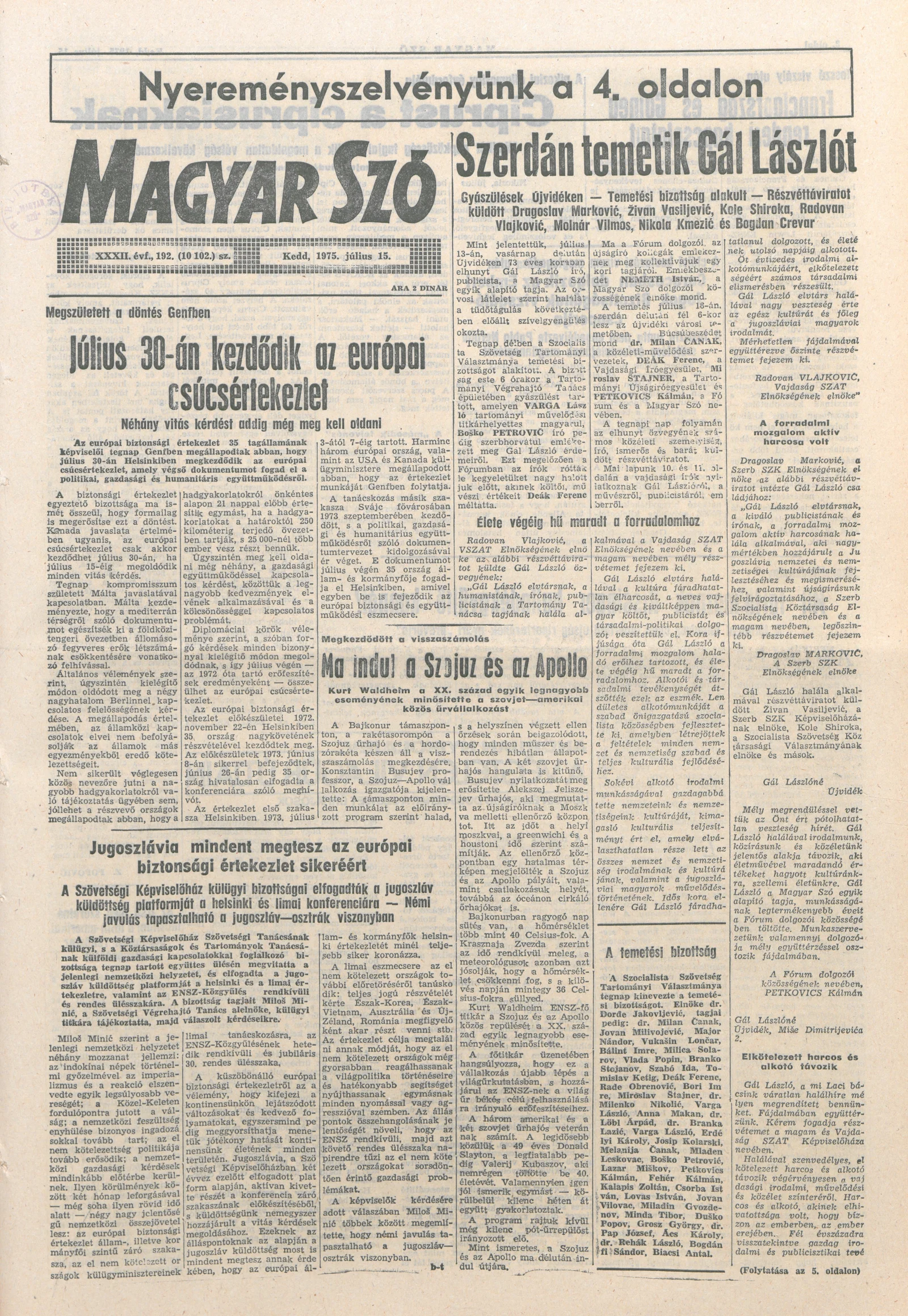 Magyar Szó, 32. évf. 1975. július 15. 192. sz.