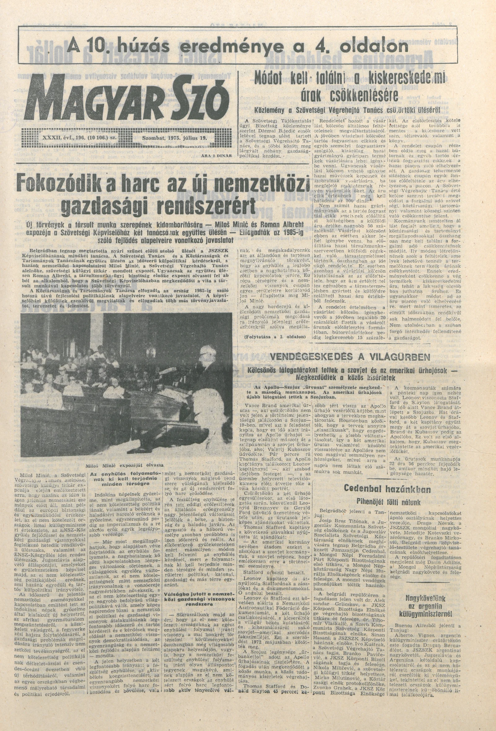 Magyar Szó, 32. évf. 1975. július 19. 196. sz.
