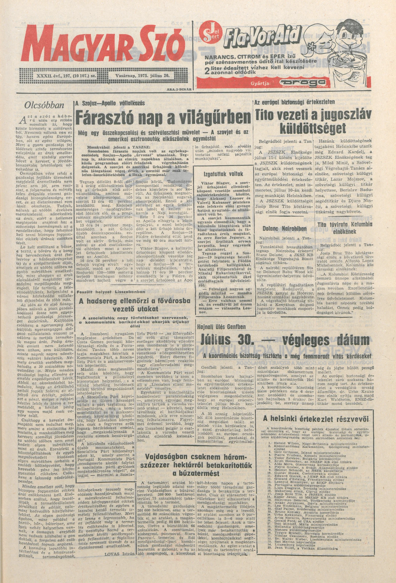 Magyar Szó, 32. évf. 1975. július 20. 197. sz.