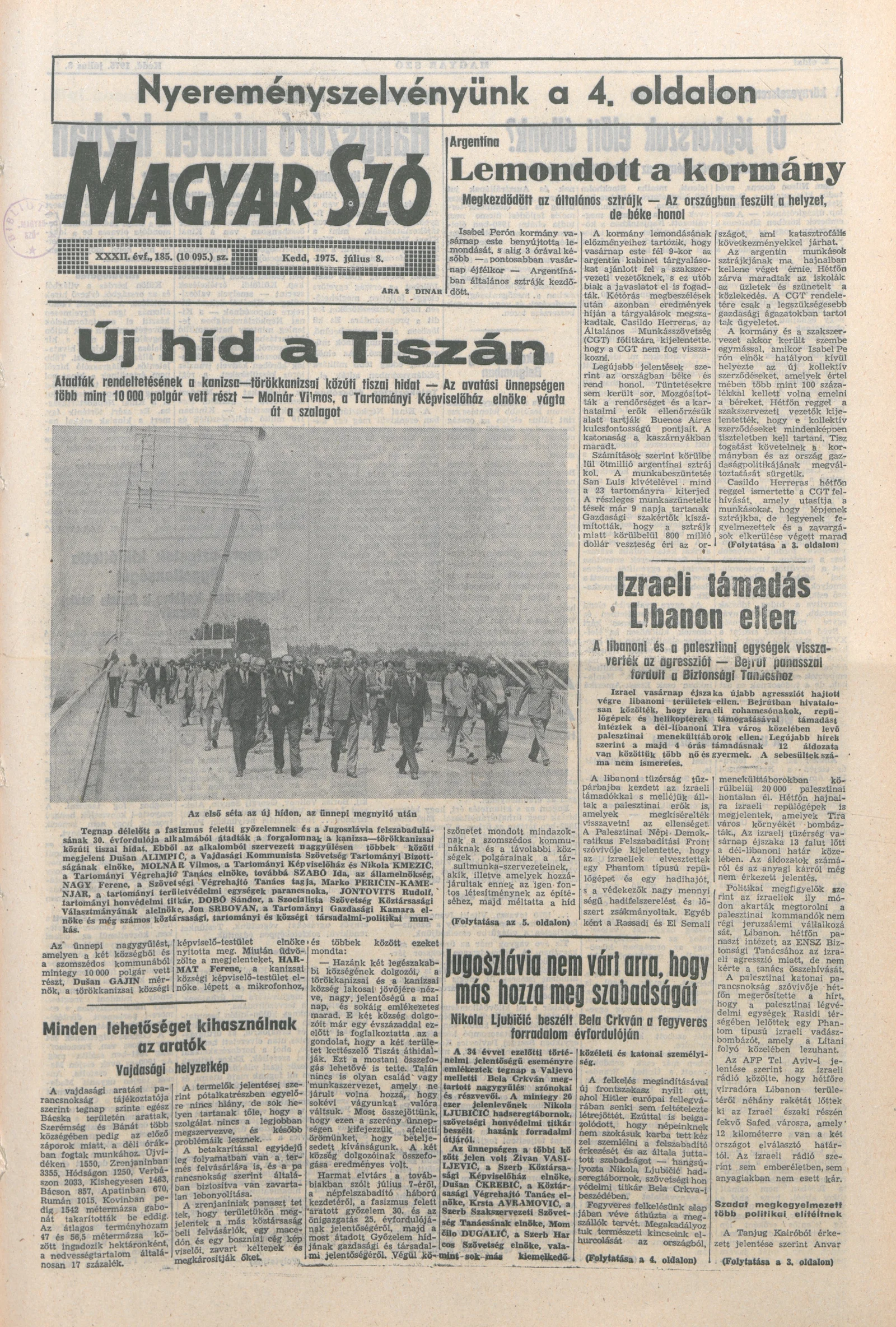 Magyar Szó, 32. évf. 1975. július 8. 185. sz.