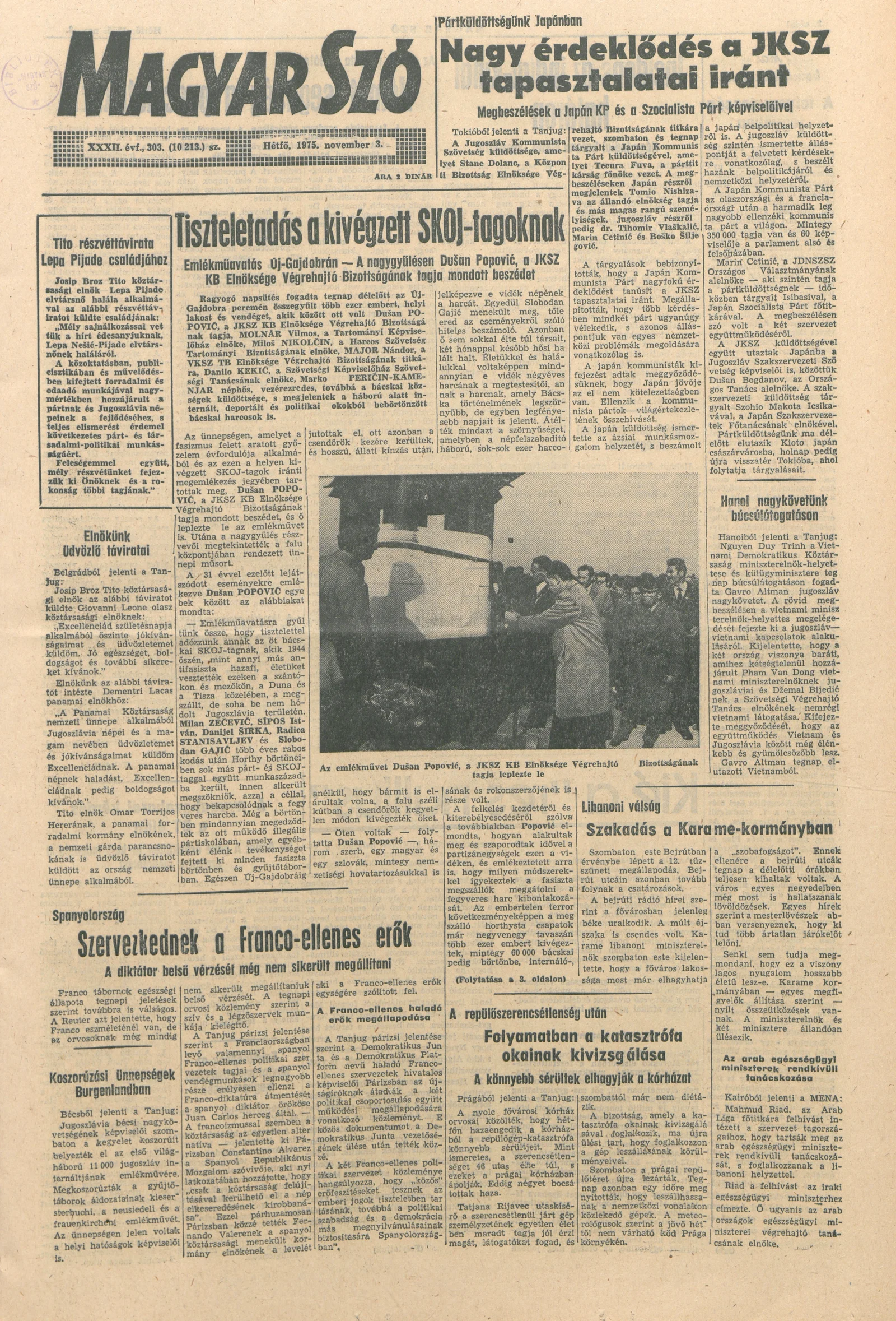 Magyar Szó, 32. évf. 1975. november 3. 303. sz.