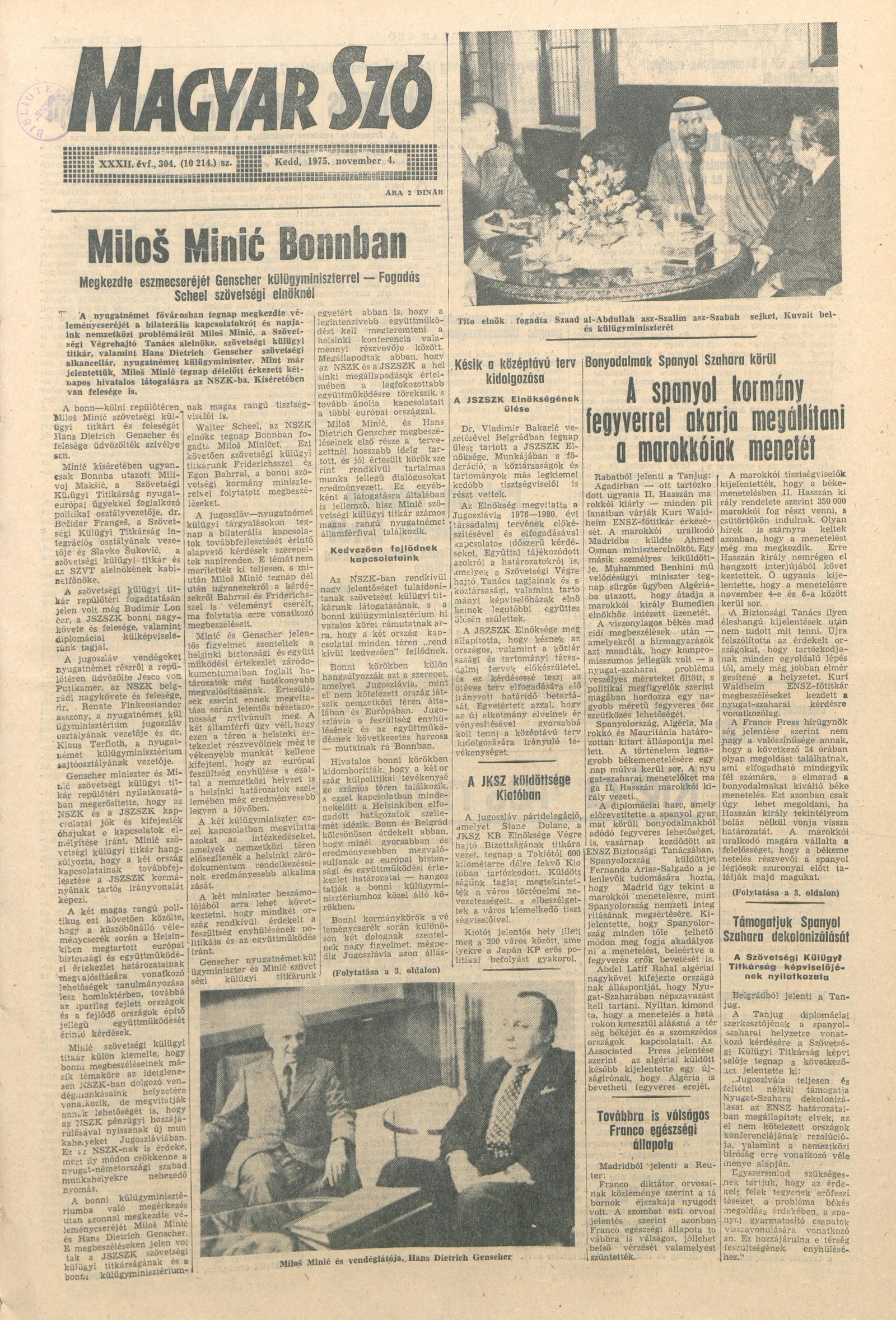 Magyar Szó, 32. évf. 1975. november 4. 304. sz.