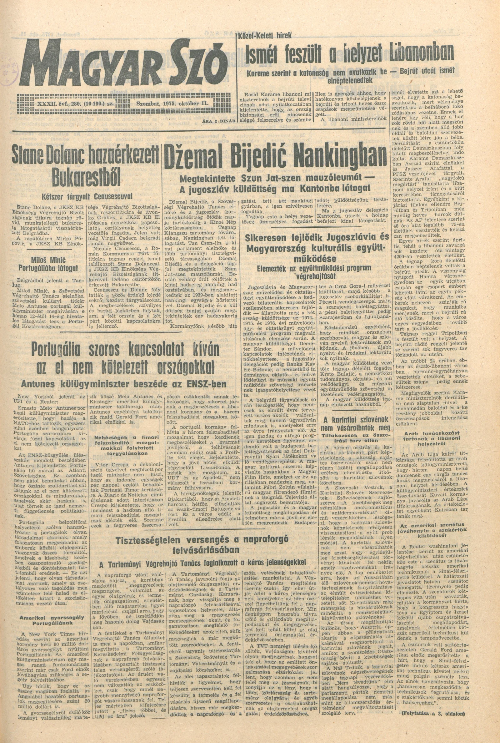 Magyar Szó, 32. évf. 1975. október 11. 280. sz.