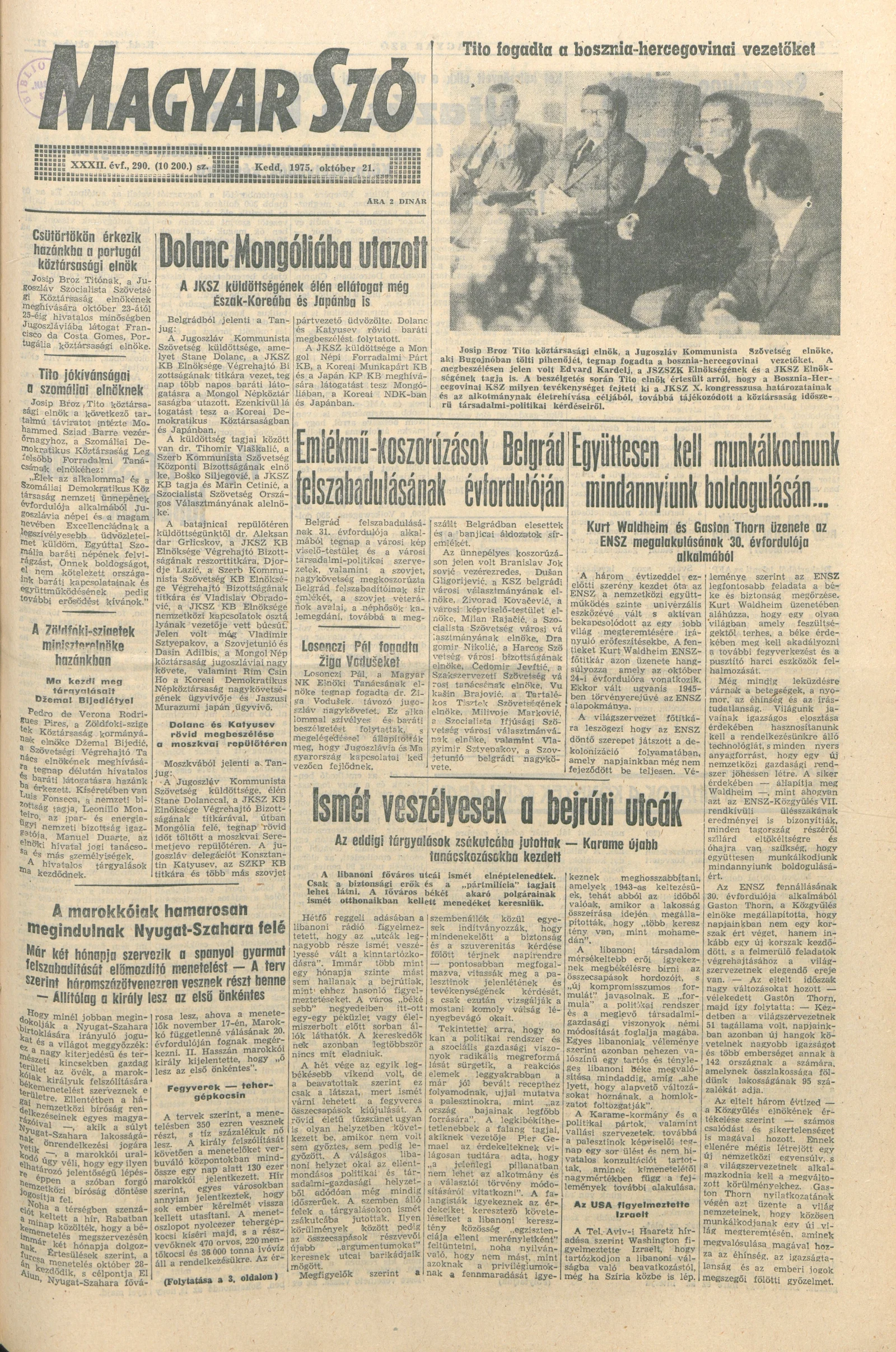 Magyar Szó, 32. évf. 1975. október 21. 290. sz.