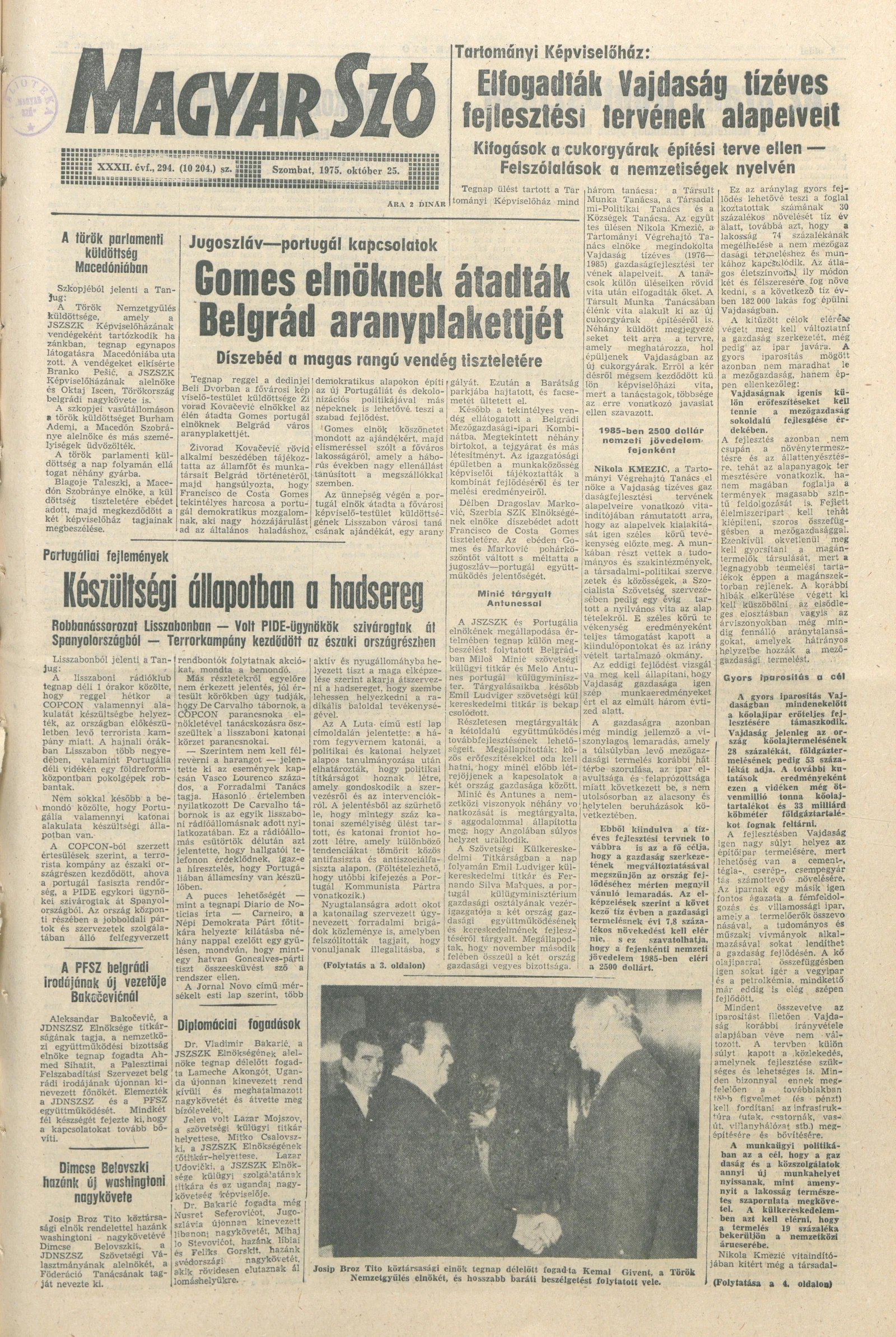 Magyar Szó, 32. évf. 1975. október 25. 294. sz.