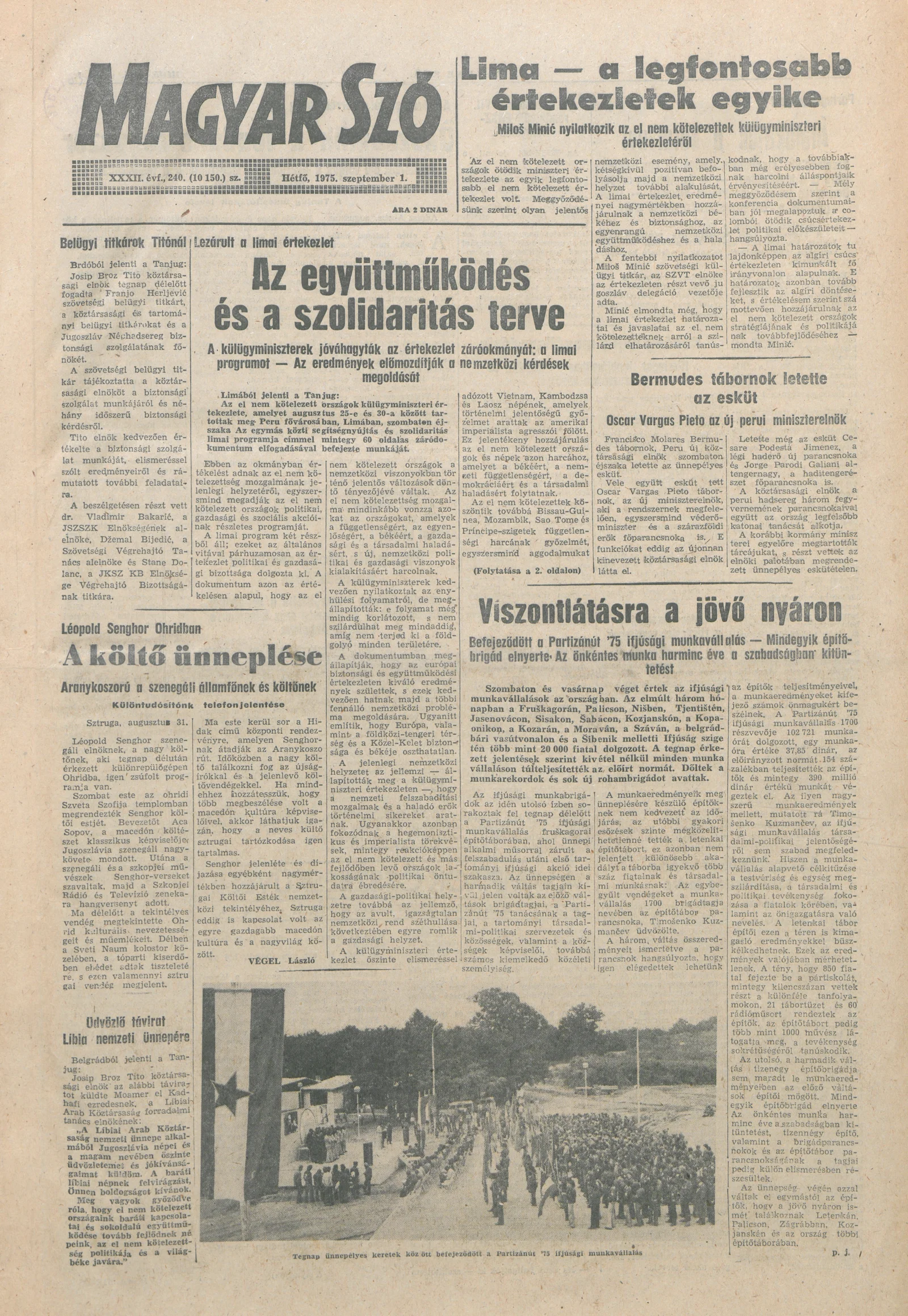 Magyar Szó, 32. évf. 1975. szeptember 1. 240. sz.