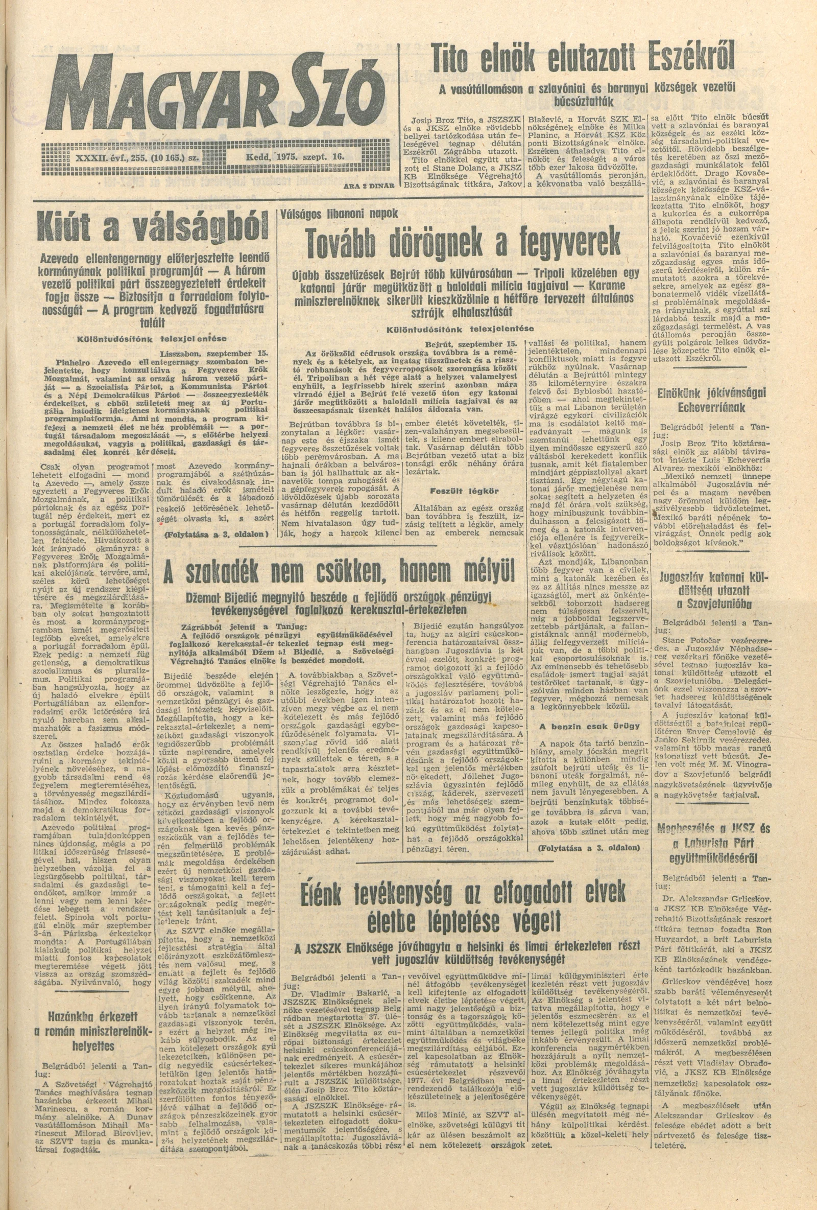 Magyar Szó, 32. évf. 1975. szeptember 16. 255. sz.