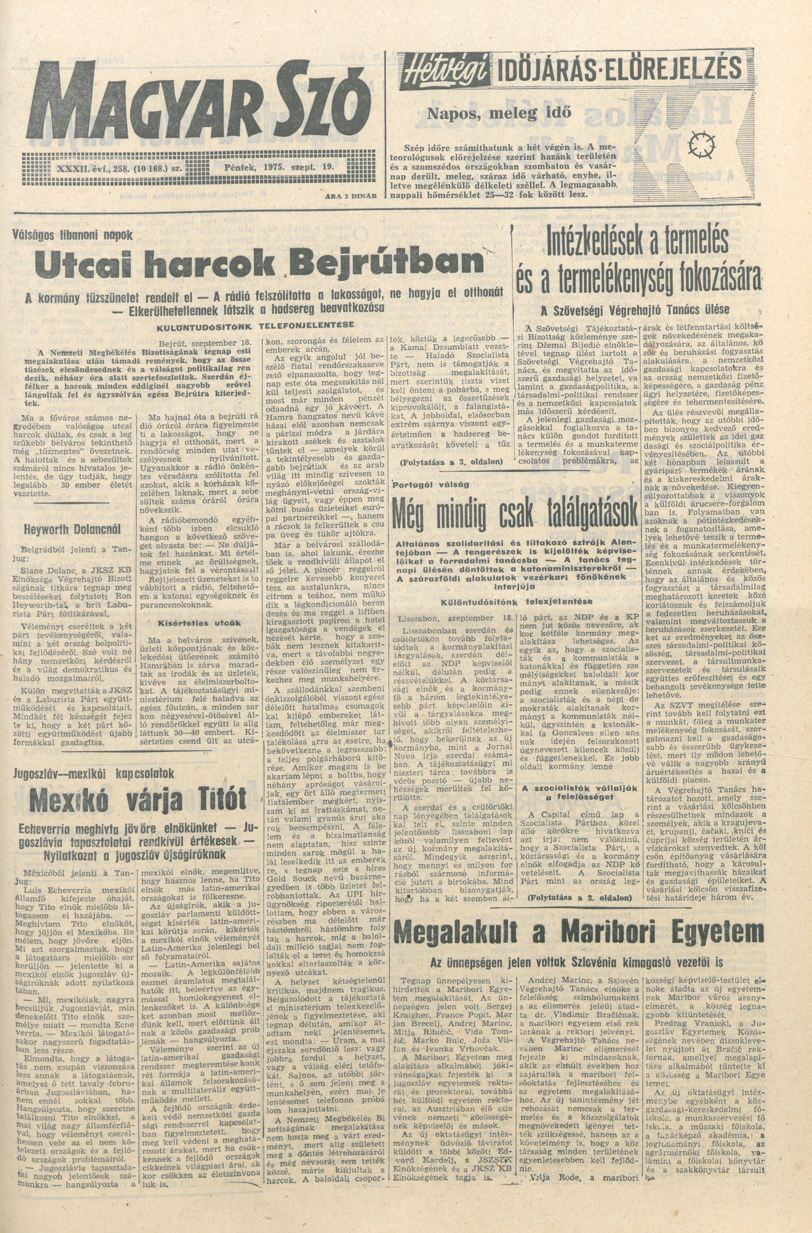 Magyar Szó, 32. évf. 1975. szeptember 19. 258. sz.