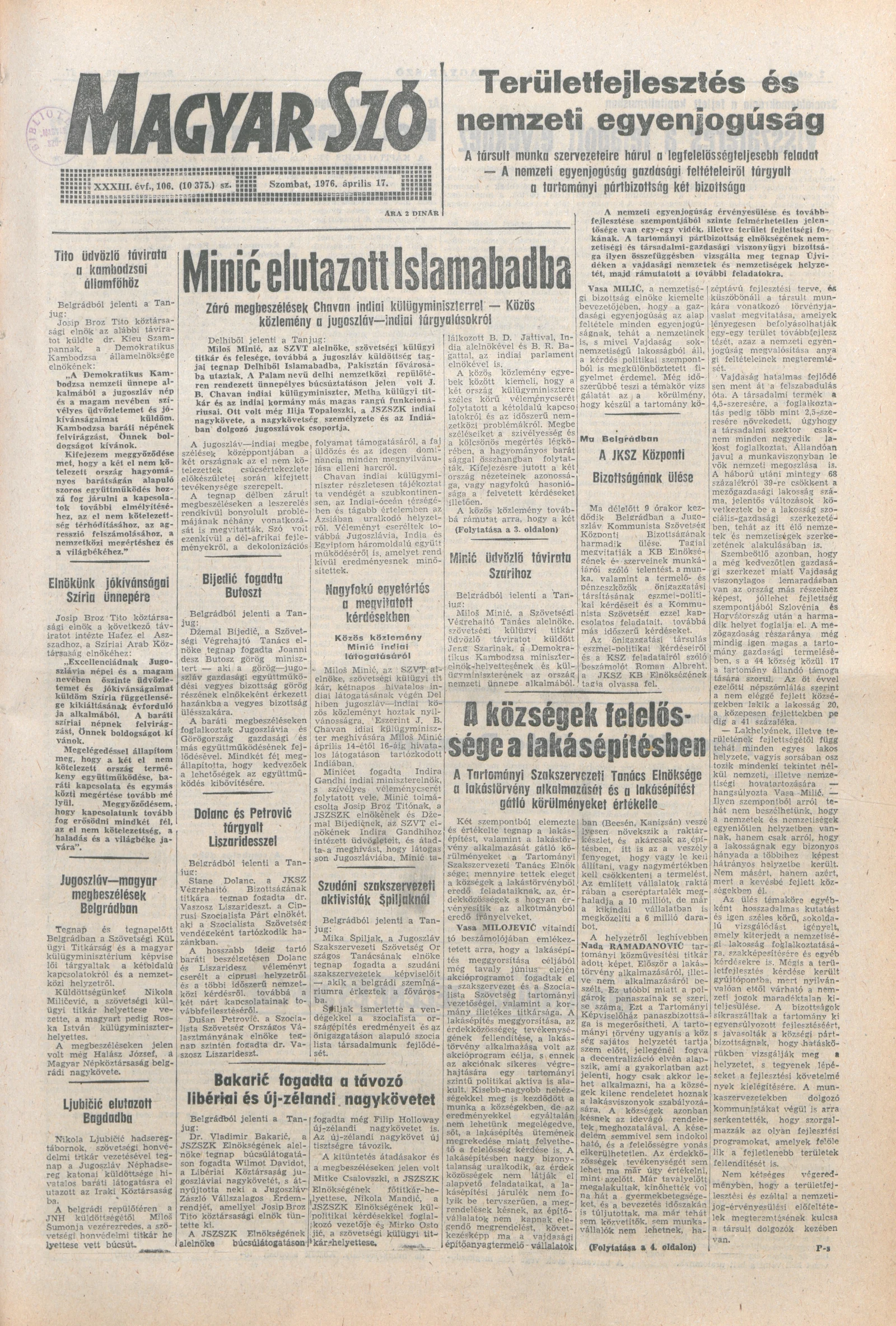 Magyar Szó, 33. évf. 1976. április 17. 106. sz. 1–20. oldal