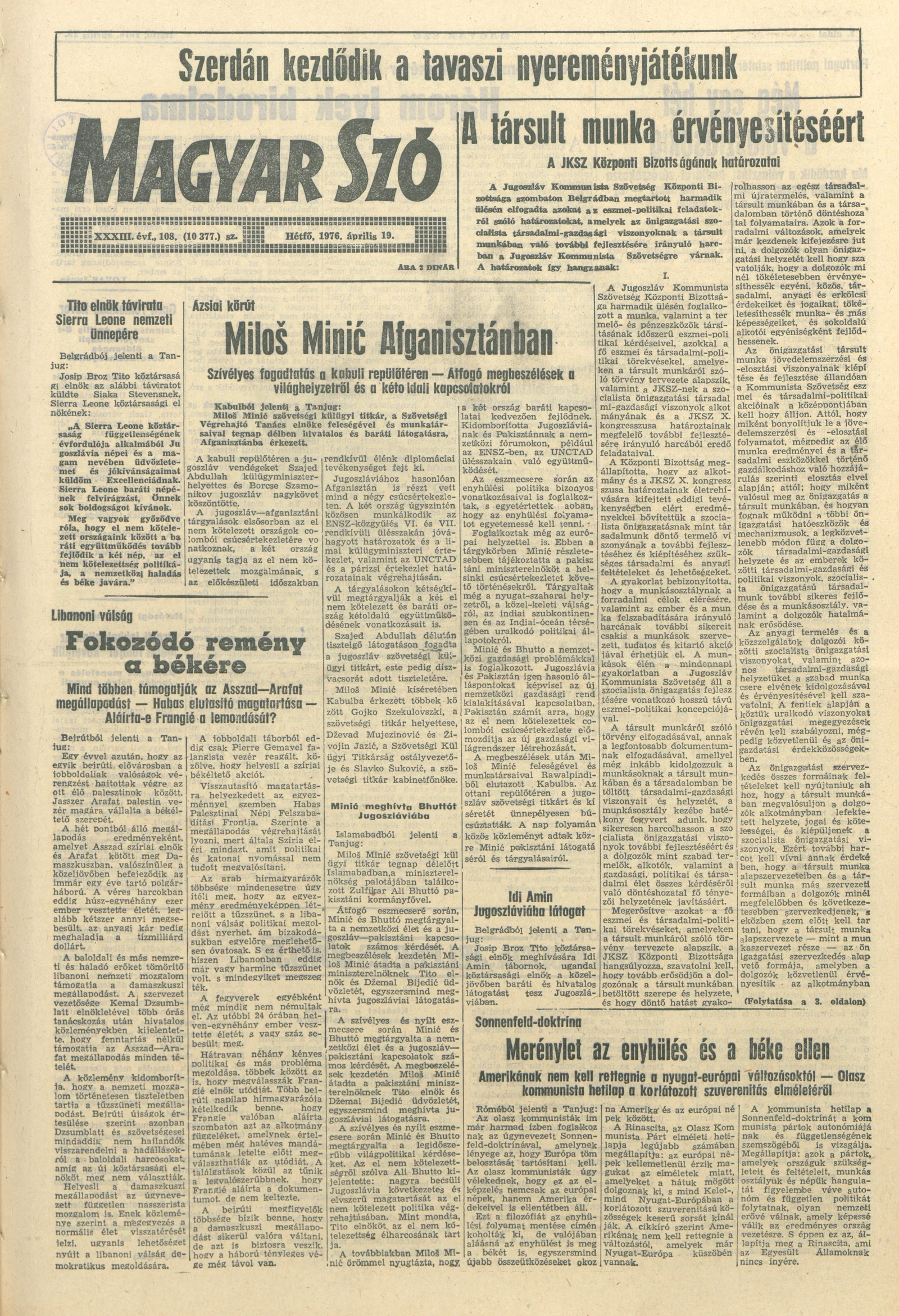 Magyar Szó, 33. évf. 1976. április 19. 108. sz. 1–8. oldal
