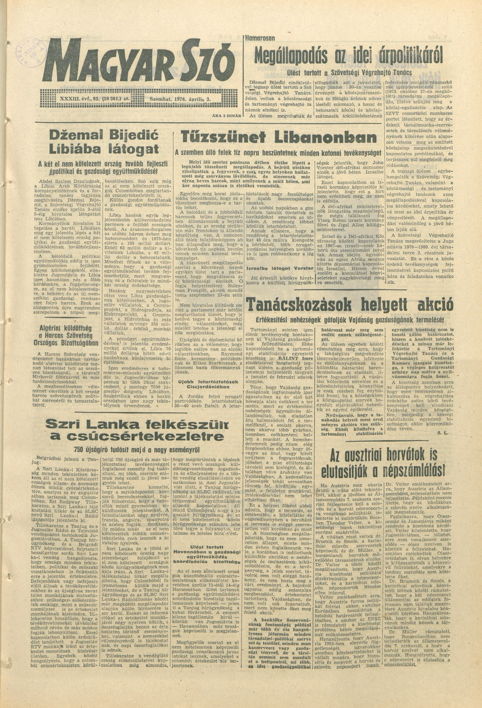 Magyar Szó, 33. évf. 1976. április 3. 92. sz. 1–20. oldal