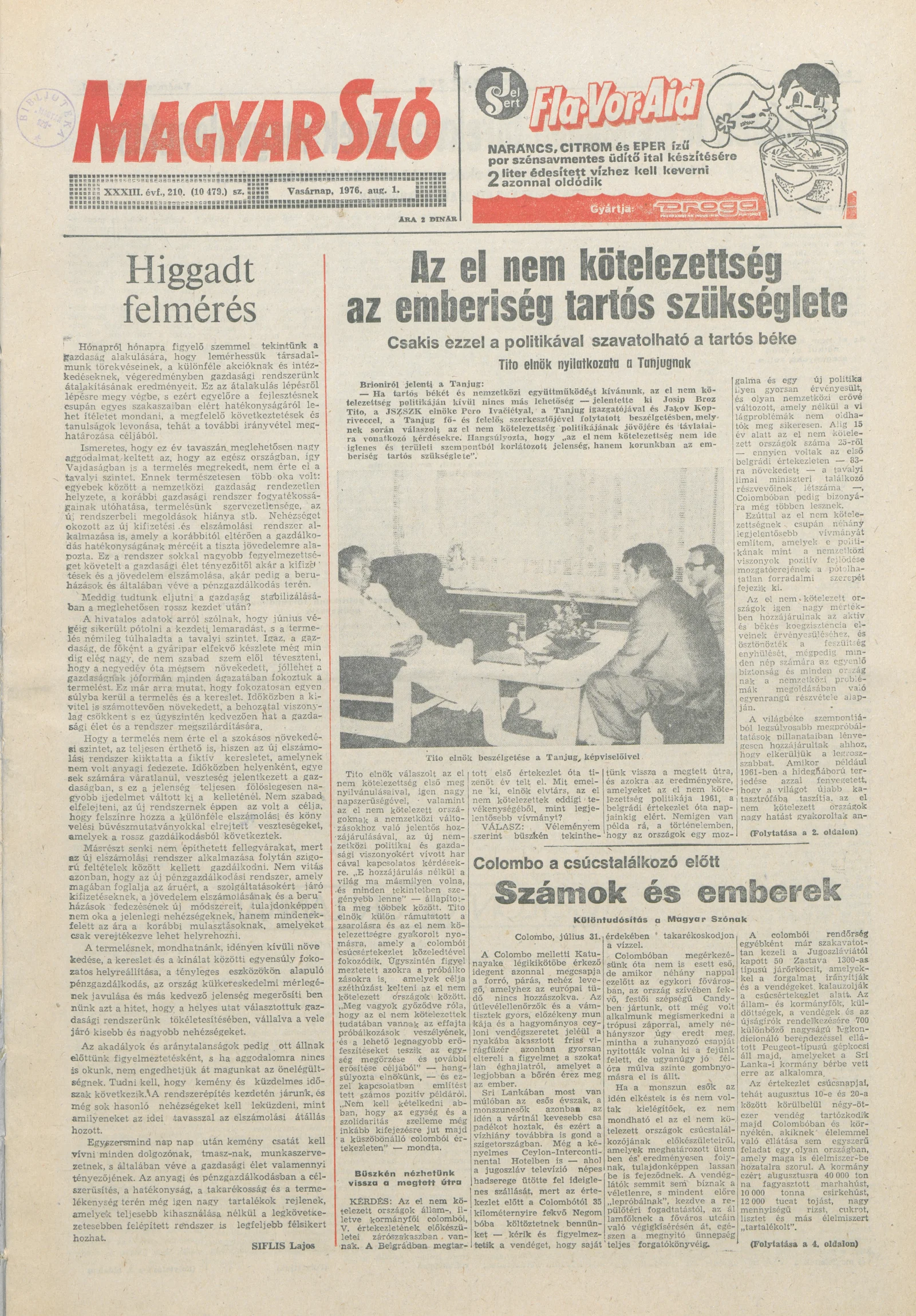 Magyar Szó, 33. évf. 1976. augusztus 1. 210. sz. 1–28. oldal
