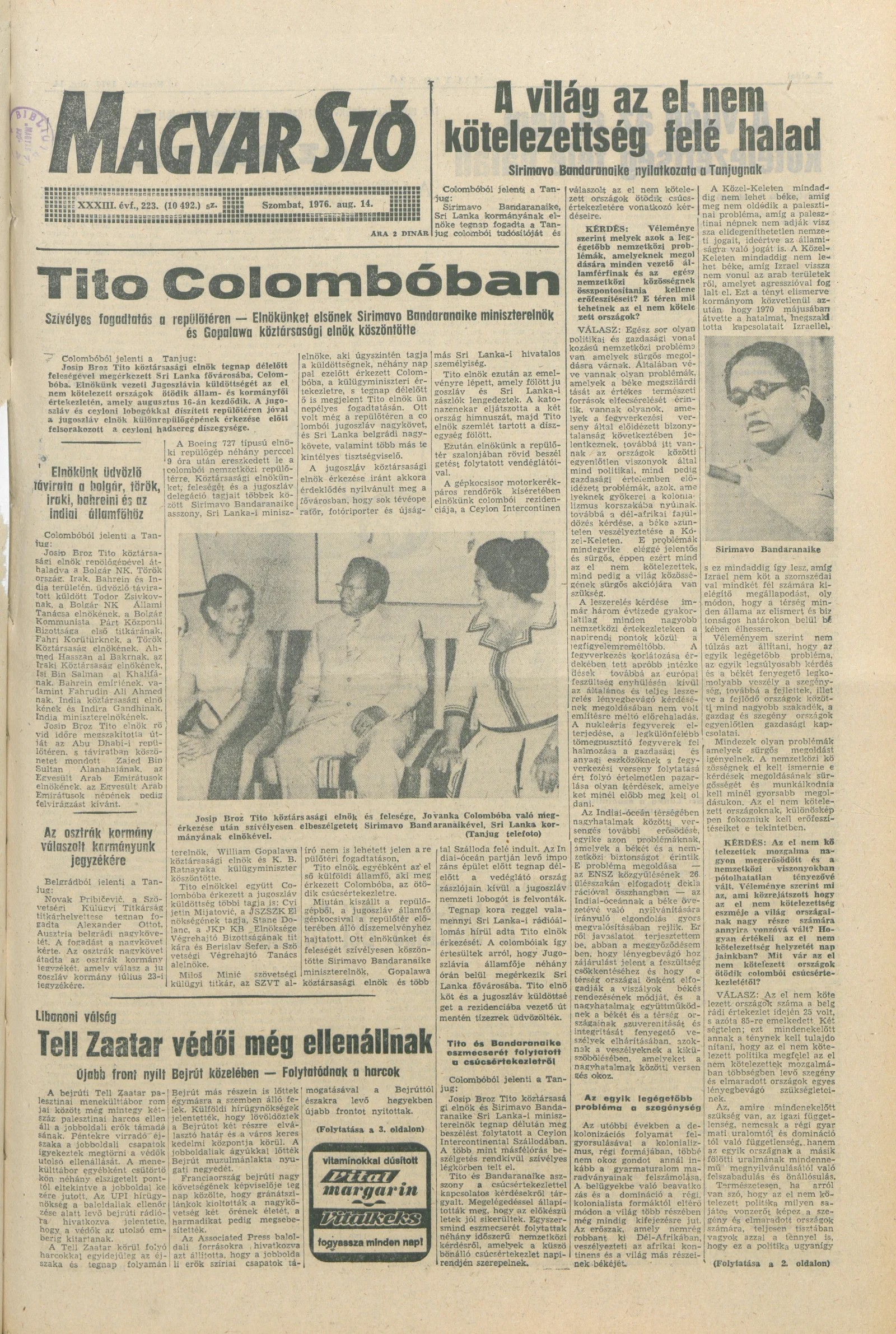 Magyar Szó, 33. évf. 1976. augusztus 14. 223. sz. 1–16. oldal