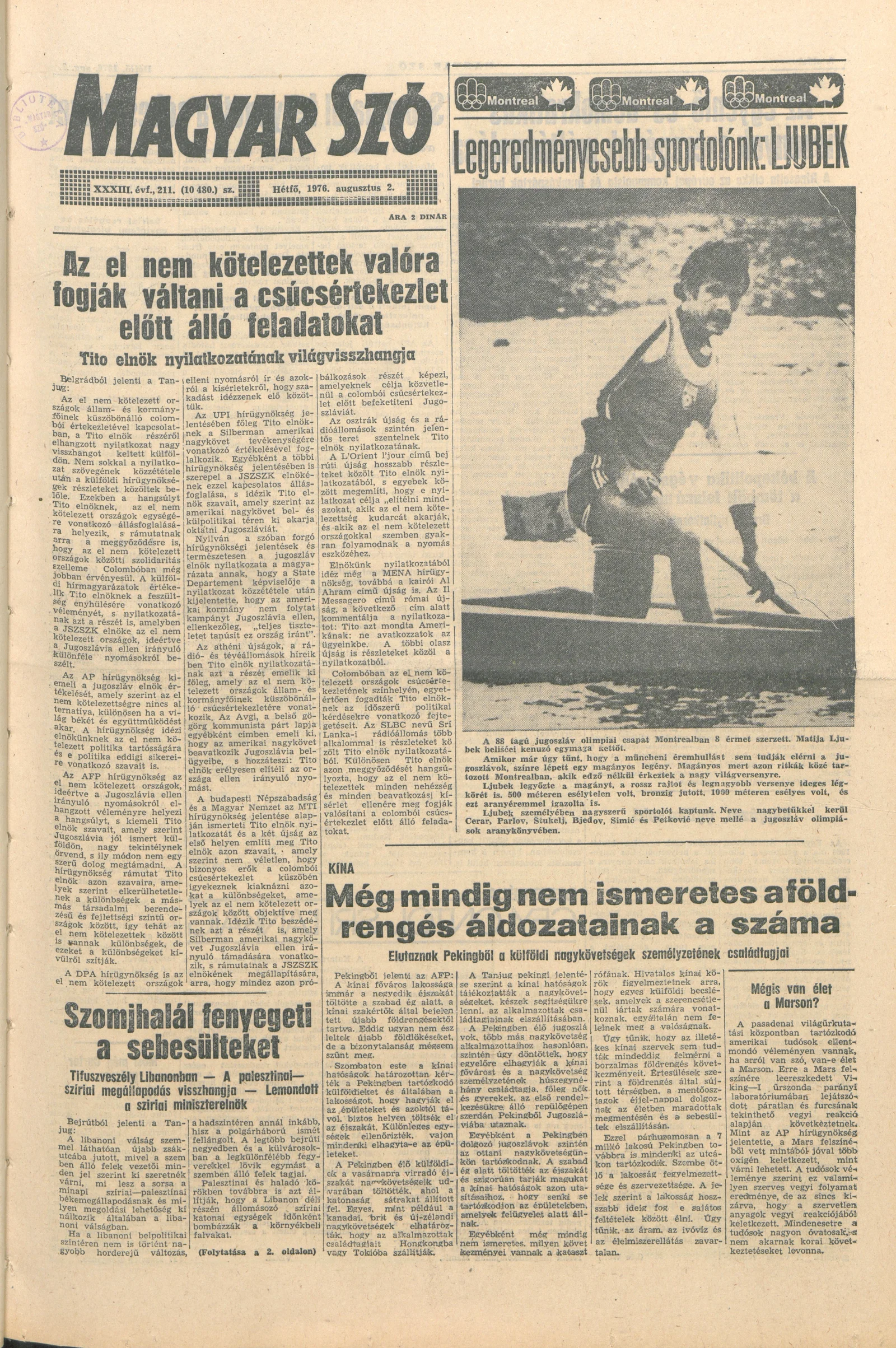 Magyar Szó, 33. évf. 1976. augusztus 2. 211. sz. 1–6. oldal