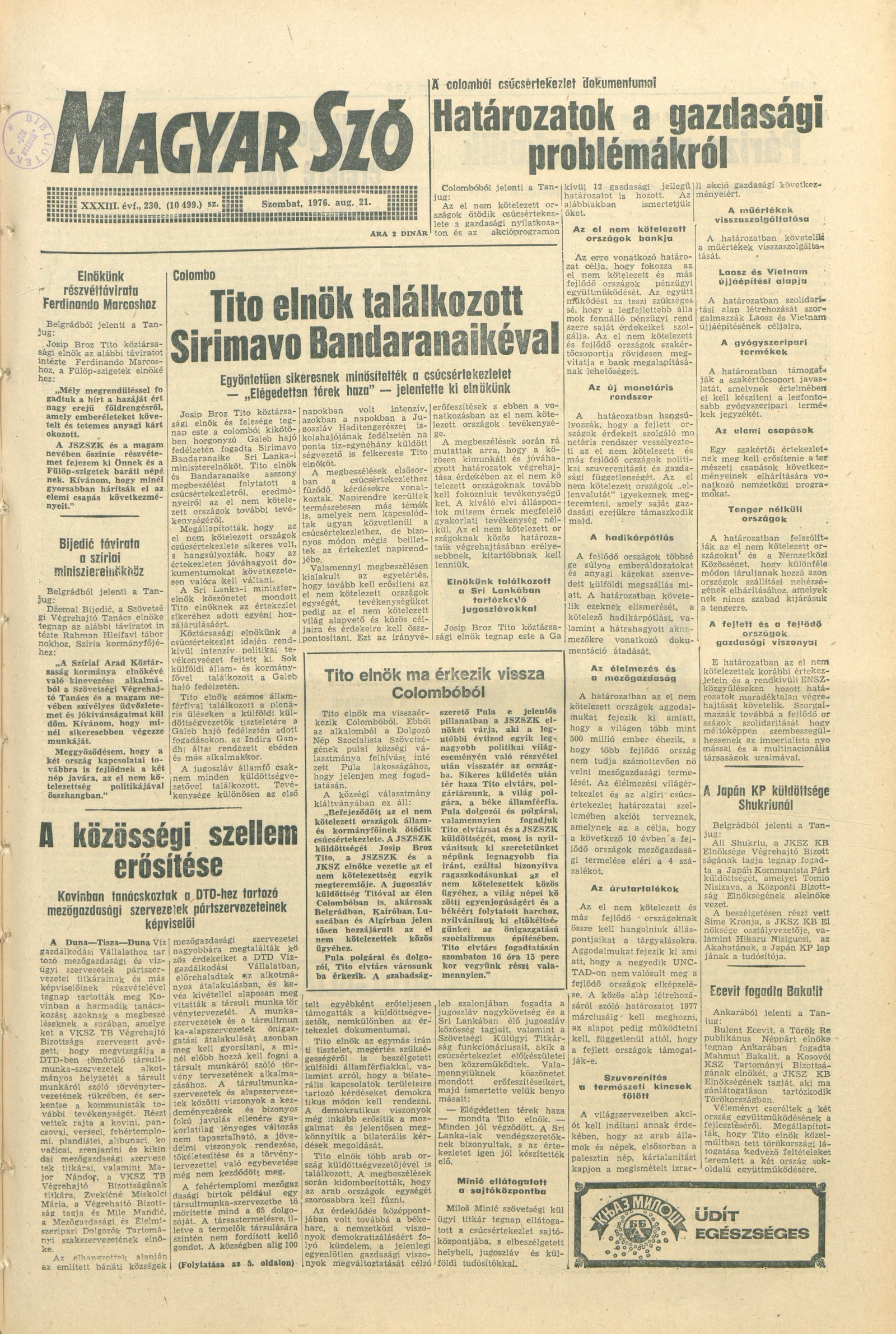 Magyar Szó, 33. évf. 1976. augusztus 21. 230. sz. 1–16. oldal