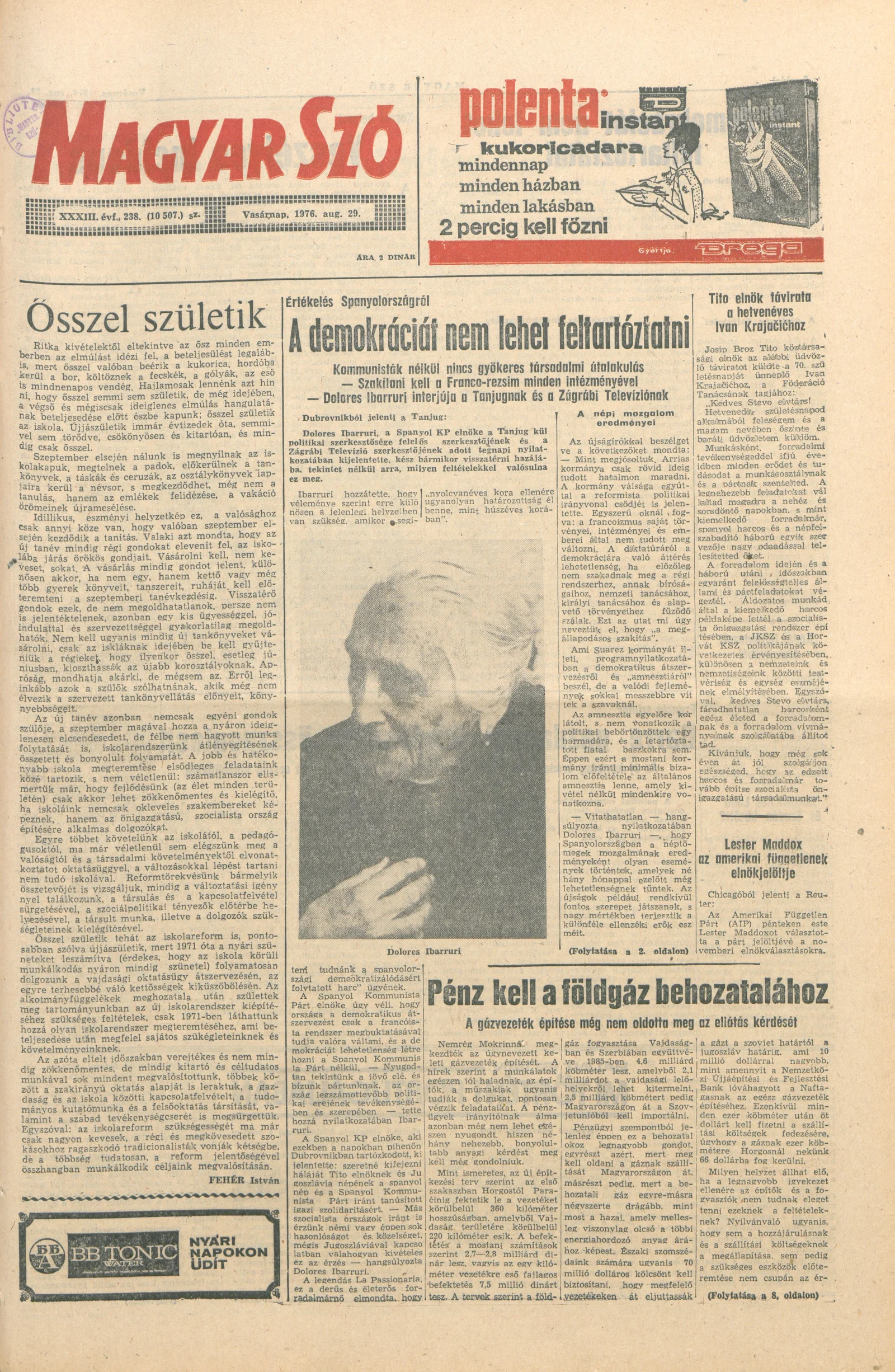 Magyar Szó, 33. évf. 1976. augusztus 29. 238. sz. 1–28. oldal