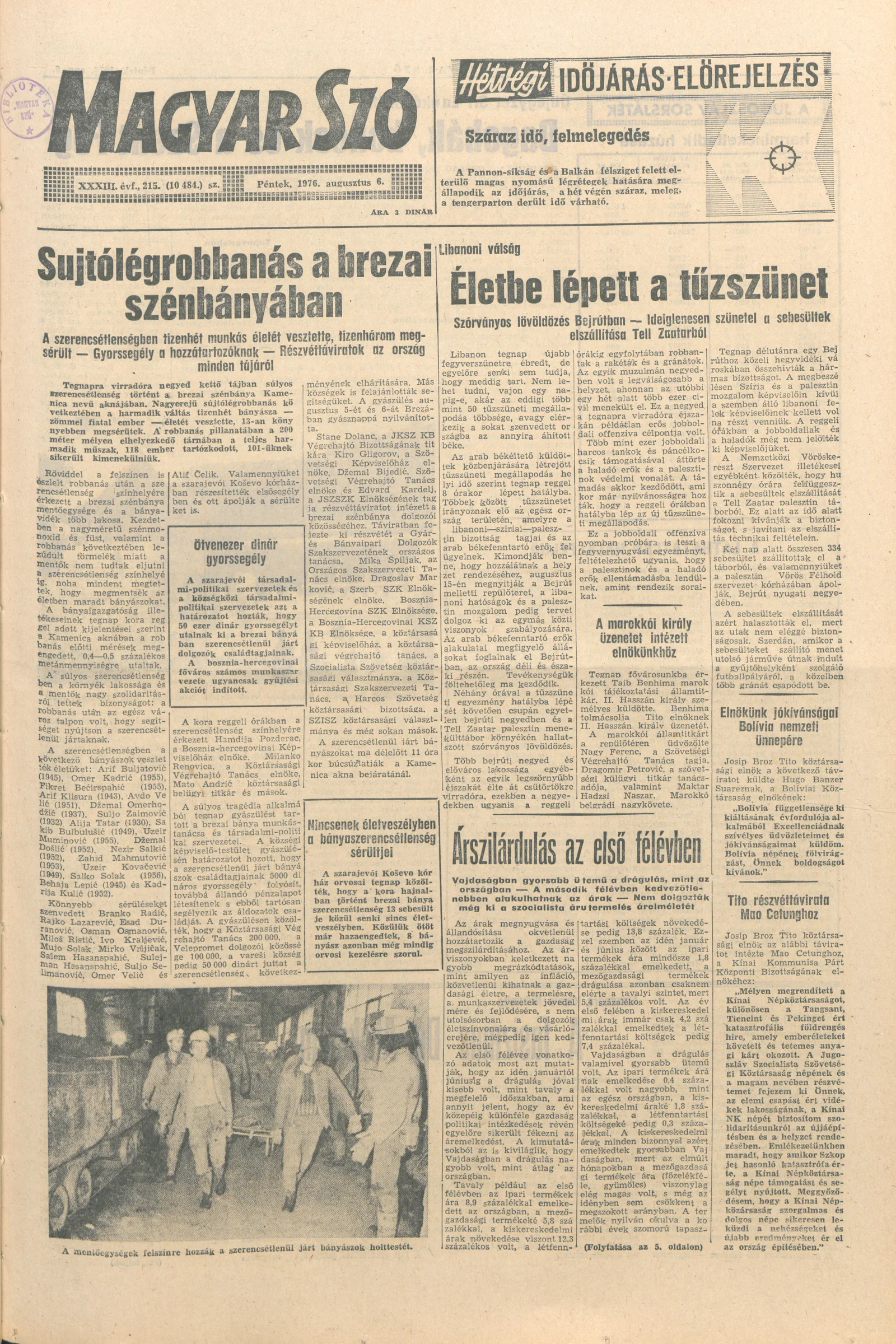 Magyar Szó, 33. évf. 1976. augusztus 6. 215. sz. 1–14. oldal
